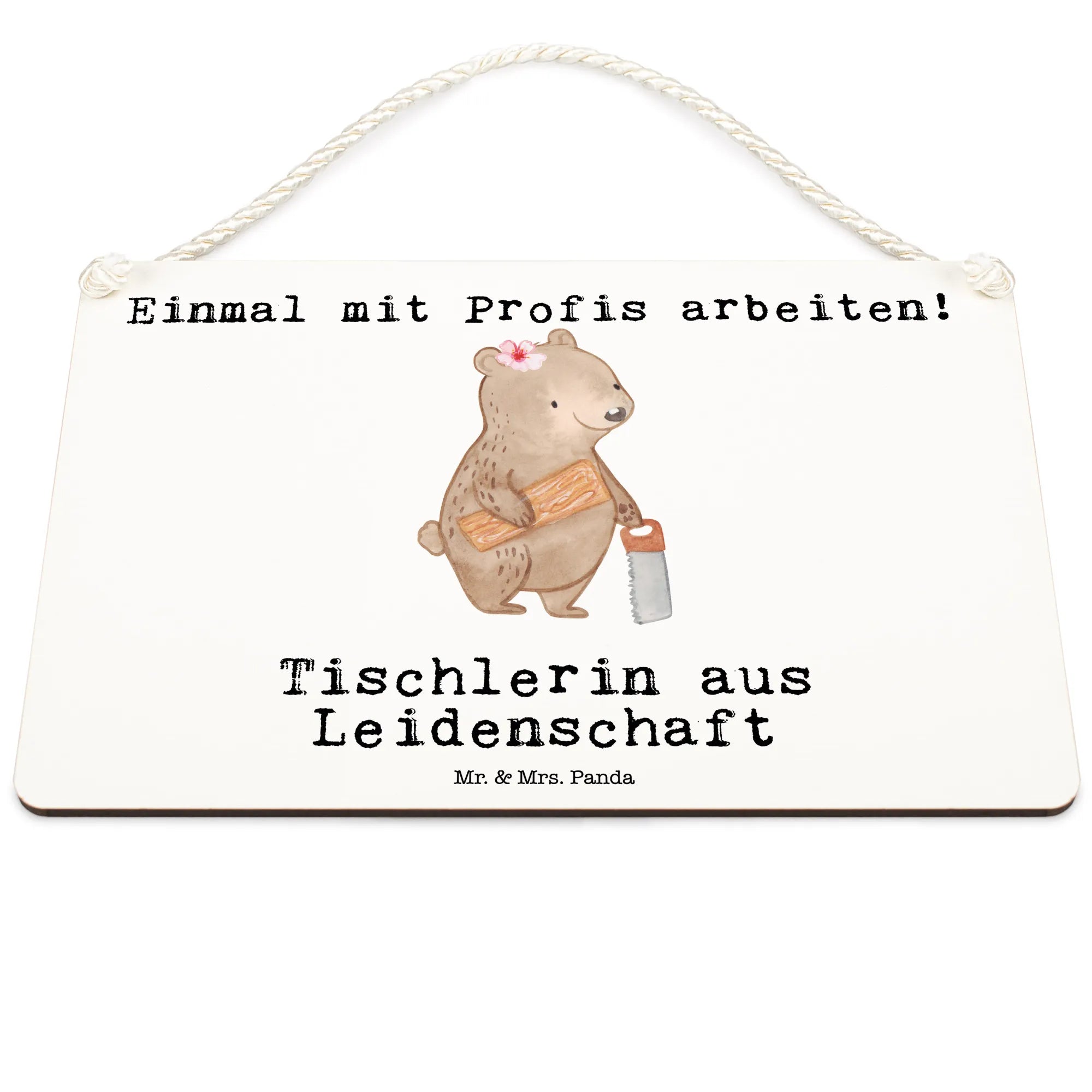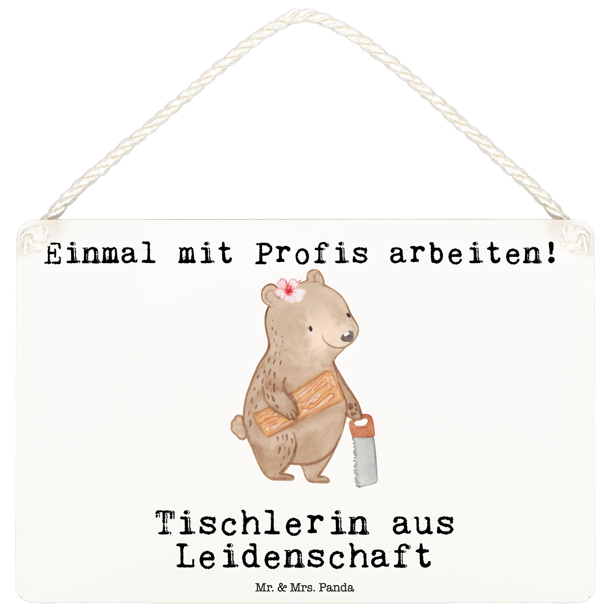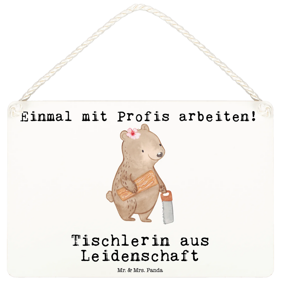 Das Motiv zeigt einen süßen, weiblichen Bären, der eine Säge in der einen und ein Holzstück in der anderen Hand hält. Es stammt aus der kreativen Berufe-Kollektion, die ganz dem Handwerk und den Menschen, die es lieben, gewidmet ist. Das Schild hat die idealen Maße von DIN A6, ist aus beschichteter Holzfaser gefertigt und zeichnet sich durch sein edles und langlebiges Druckbild aus. Mit der hübschen, gedrehten Kordel zur Aufhängung kannst du das Schild sowohl an der Wand als auch an der Tür anbringen.