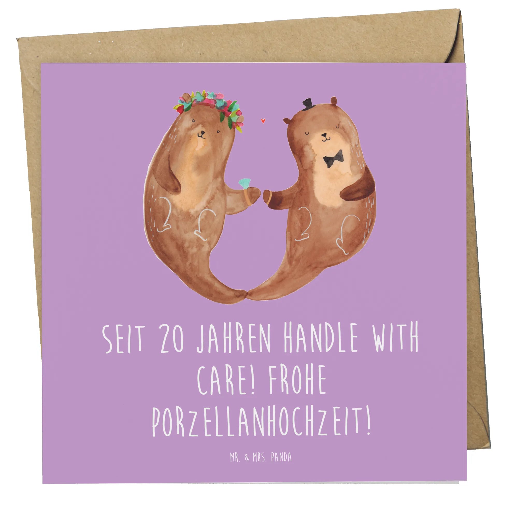 Feiere 20 Jahre Liebe mit Stil! Unsere Deluxe Karte „Porzellanhochzeit“ aus der Hochzeit-Kollektion von Mr. & Mrs. Panda ist die perfekte Grußkarte zum 20. Hochzeitstag. Mit dem liebevollen Spruch „Seit 20 Jahren handle with care! Frohe Porzellanhochzeit!“ auf der Vorderseite bringt sie genau die richtige Mischung aus Herzlichkeit und Charme.