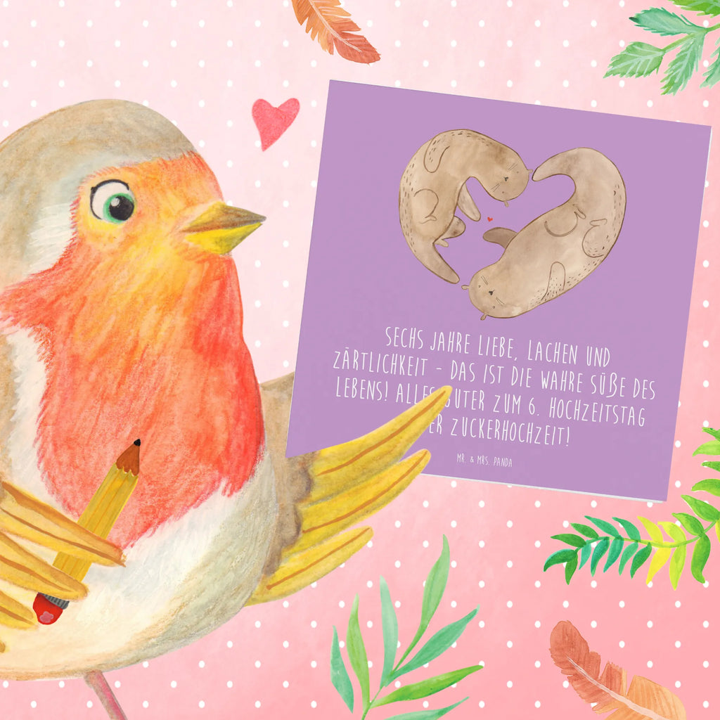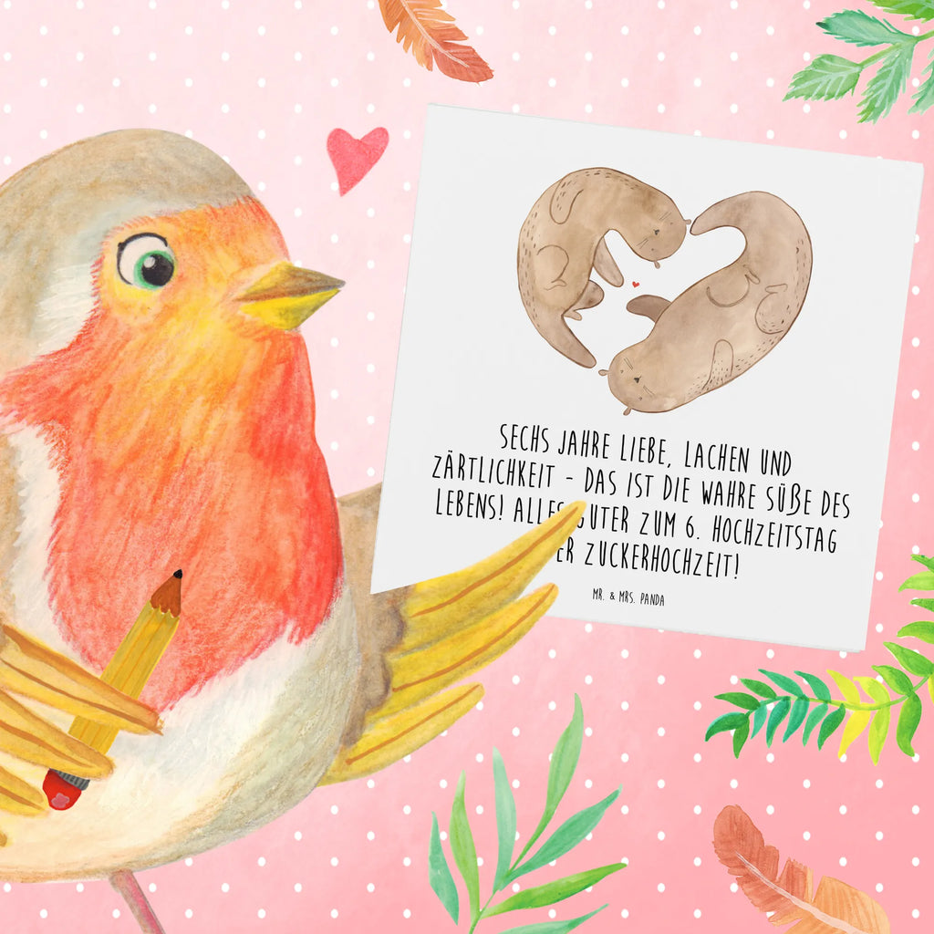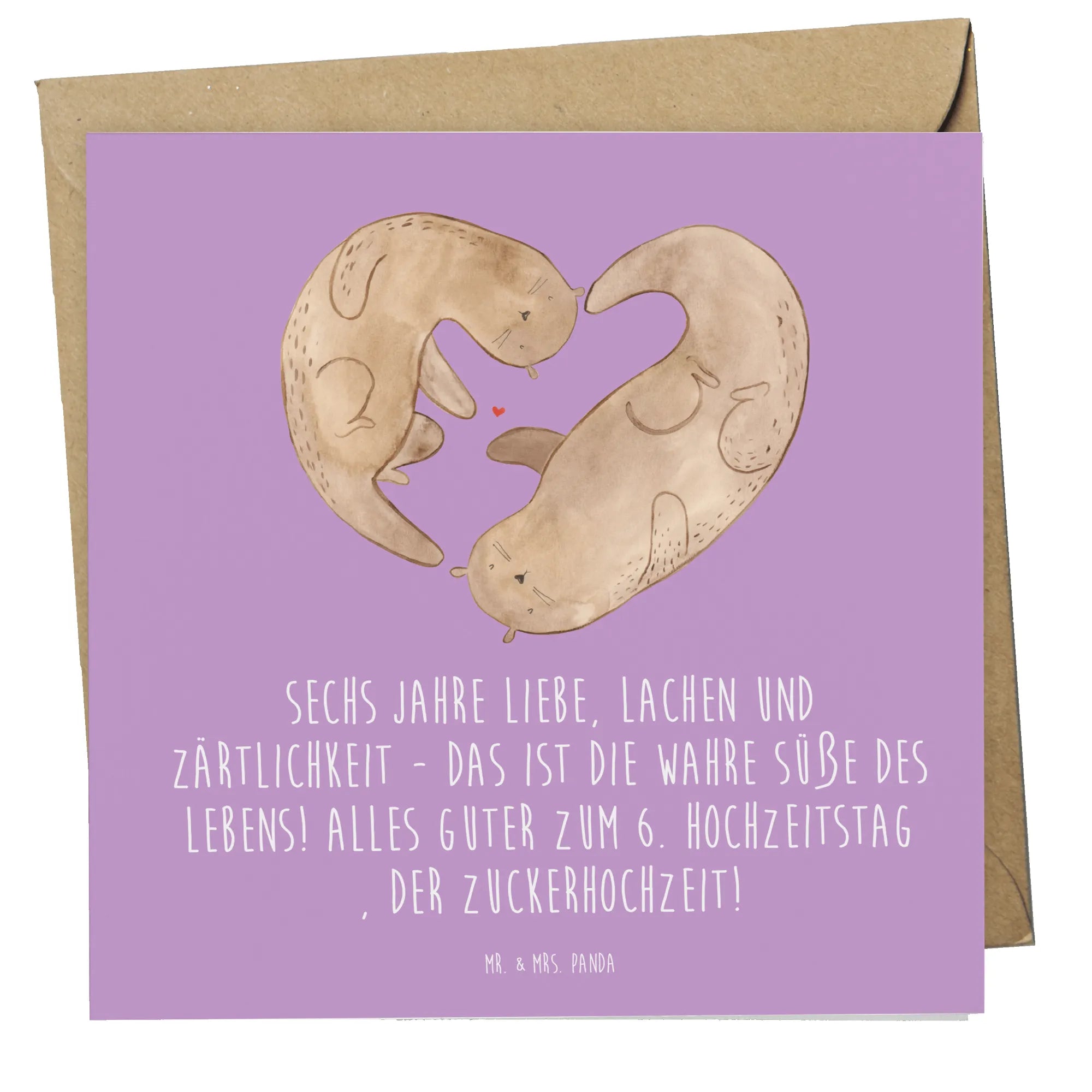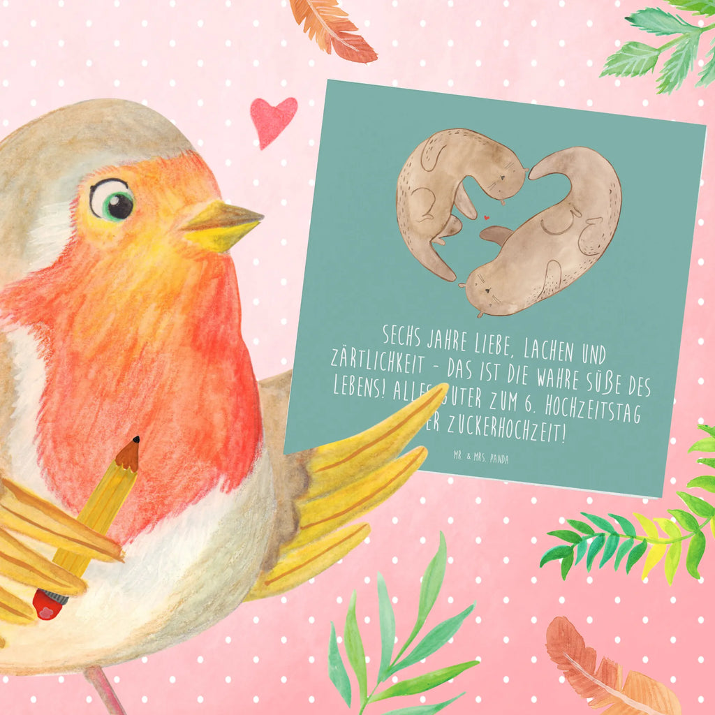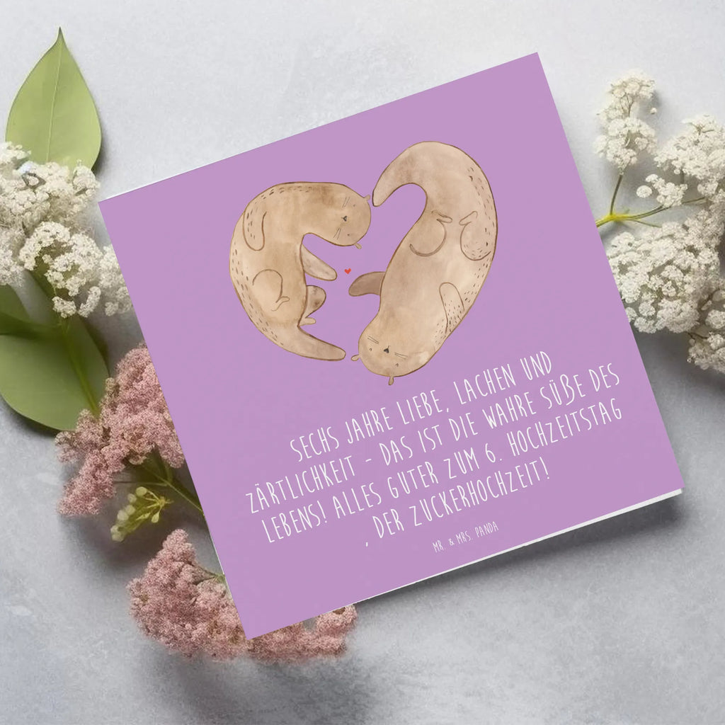 Die Deluxe Karte zum 6. Hochzeitstag, der Zuckerhochzeit, von Mr. & Mrs. Panda ist das perfekte Geschenk, um eure Liebe und Zuneigung an diesem besonderen Tag zu feiern. Diese hochwertige, quadratische Klappkarte ist mit einem herzlichen Spruch versehen: "Sechs Jahre Liebe, Lachen und Zärtlichkeit - das ist die wahre Süße des Lebens! Alles Gute zum 6. Hochzeitstag, der Zuckerhochzeit!" Sie vermittelt all das, was eine gute Ehe ausmacht – Freude, Zärtlichkeit und unvergessliche Momente.