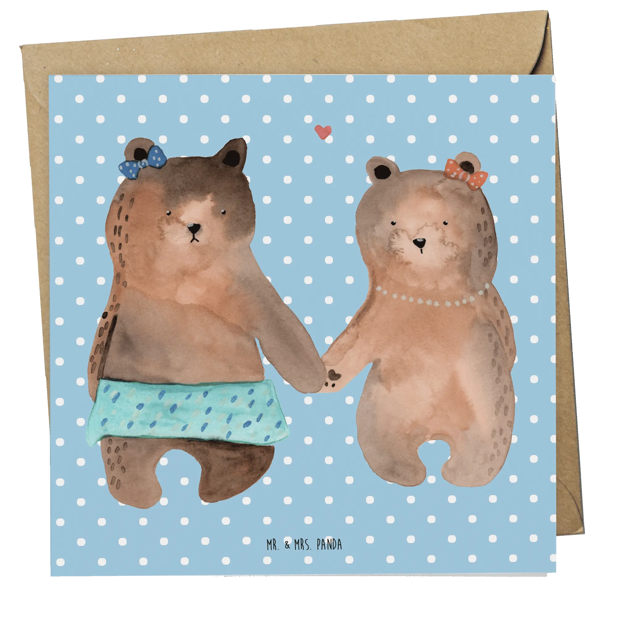 Die Deluxe Karte mit dem wundervollen Motiv Bär Freundin von Mr. & Mrs. Panda ist nicht nur eine Karte, sondern ein Ausdruck von Liebe und Freundschaft. Diese hochwertige quadratische Karte, hergestellt aus edlem 300 Gramm Karton, ist mit einem zarten, liebevollen Bärenmotiv verziert. Die beiden süßen Bärenmädchen, die sich an den Händen halten, erinnern uns daran, wie kostbar wahre Freundschaften sind.