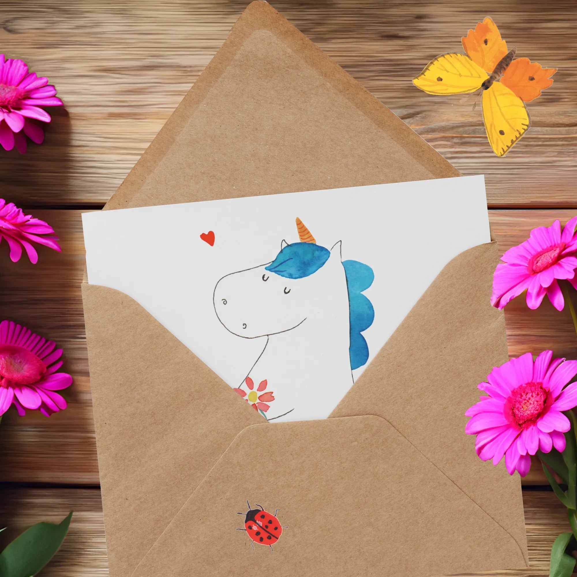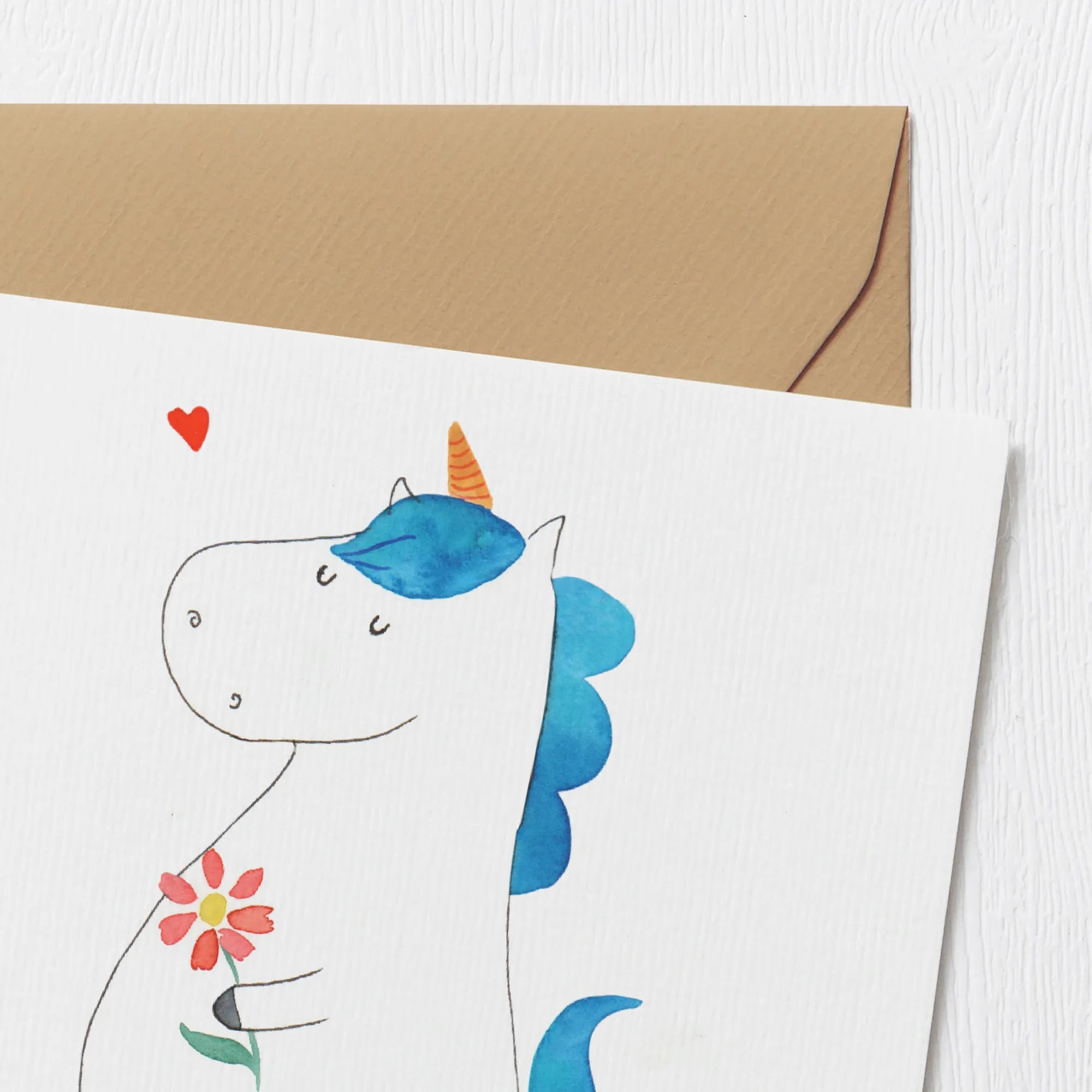 Diese hochwertige Klappkarte ist perfekt für jede Gelegenheit, sei es für einen Geburtstag, eine Hochzeit oder einfach nur, um deinen Liebsten eine Freude zu machen. Mit ihrem handgezeichneten Einhorn-Motiv, das mit einer wunderschönen Blume auf einem Spaziergang wirkt, zaubert sie jedem ein Lächeln ins Gesicht.