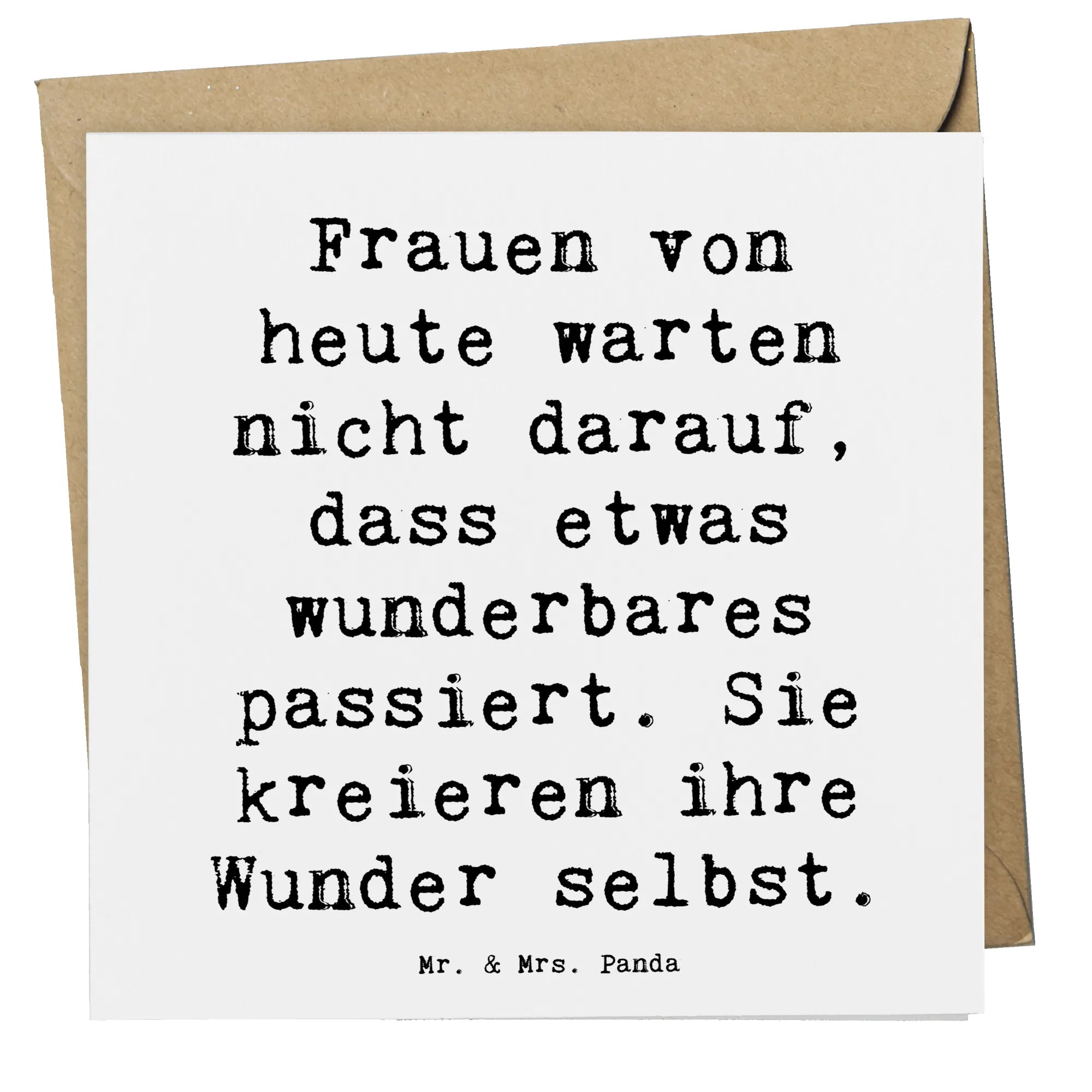 Der Spruch auf der Karte lautet: "Frauen von heute warten nicht darauf, dass etwas wunderbares passiert. Sie kreieren ihre Wunder selbst." – eine schöne Botschaft, die Frauen dazu ermutigt, ihre eigenen Träume zu verwirklichen. Diese Karte spricht Frauen an, die selbstbewusst und mutig sind, und passt somit bestens für junge Mütter, beste Freundinnen oder Kolleginnen, die gerade eine neue Herausforderung annehmen.