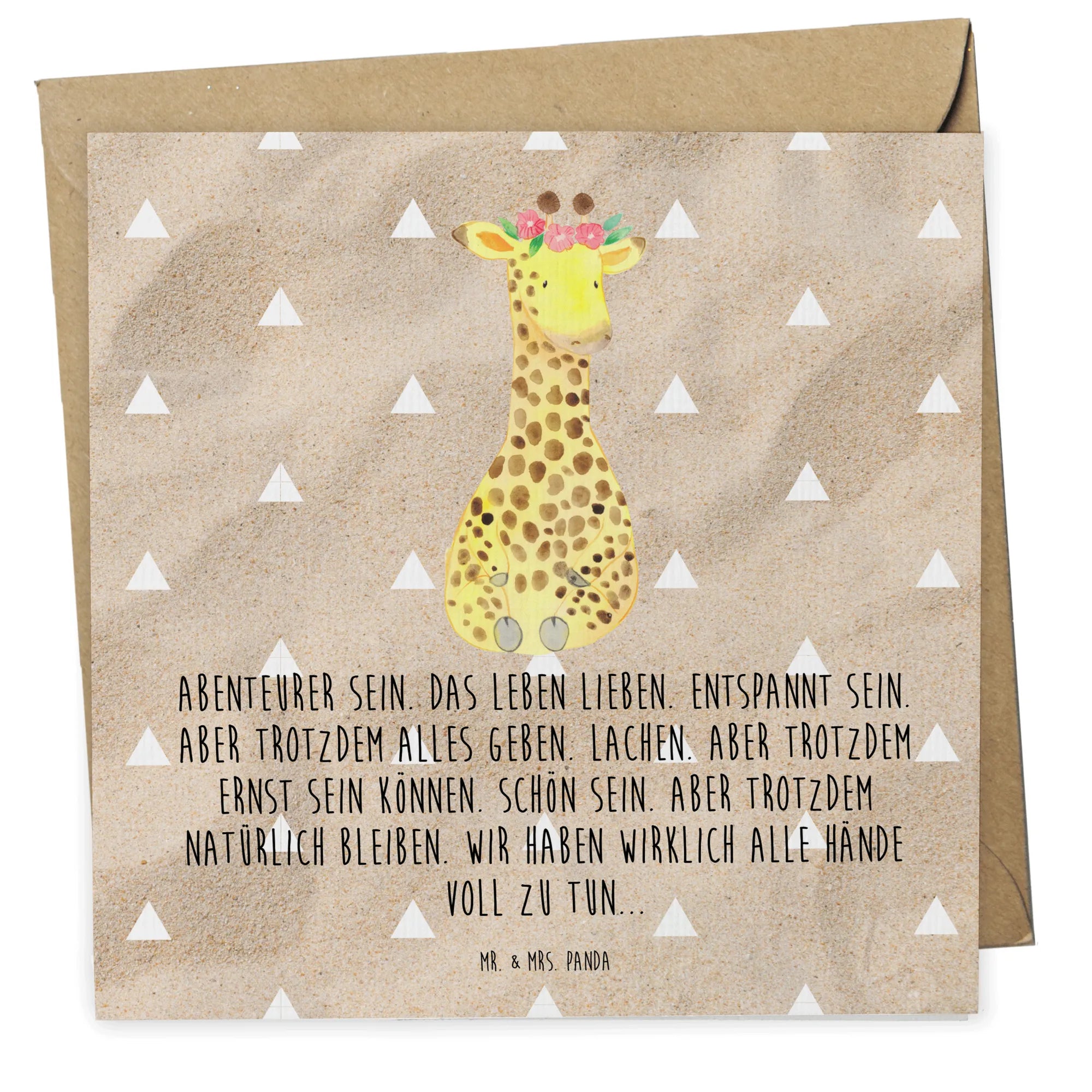 Die Deluxe Karte Giraffe Blumenkranz von Mr. & Mrs. Panda ist das perfekte Geschenk für all jene, die das Besondere lieben. Egal ob für eine Hochzeit, einen Geburtstag oder einfach nur so – diese hochwertige Klappkarte bringt Freude in jedes Herz. Mit ihrem liebevoll gestalteten Motiv einer süßen Giraffe, die einen bunten Blumenkranz trägt, zaubert sie ein Lächeln auf die Gesichter Deiner Liebsten.
