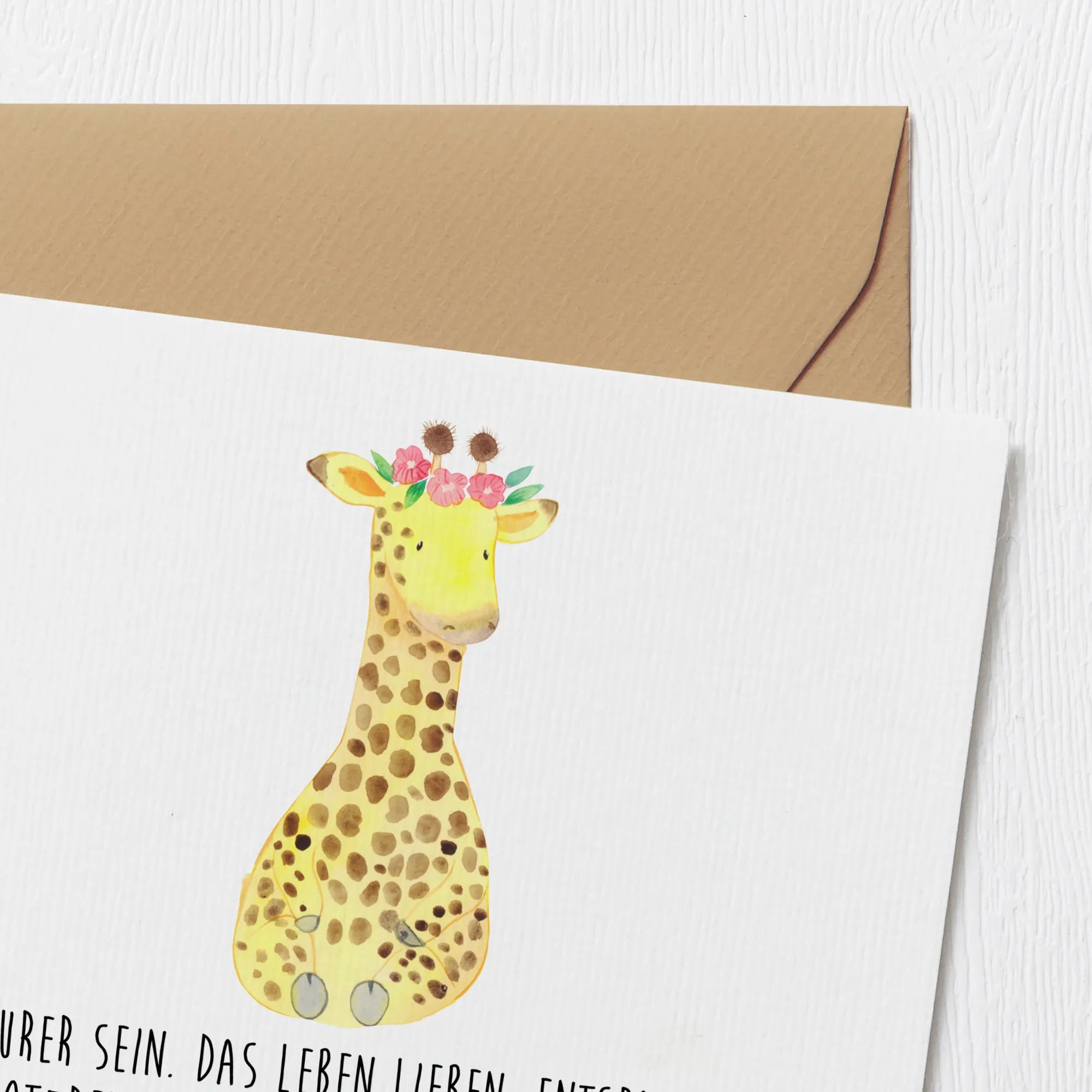 Deluxe Karte Giraffe Blumenkranz - mit Spruch - Weiß