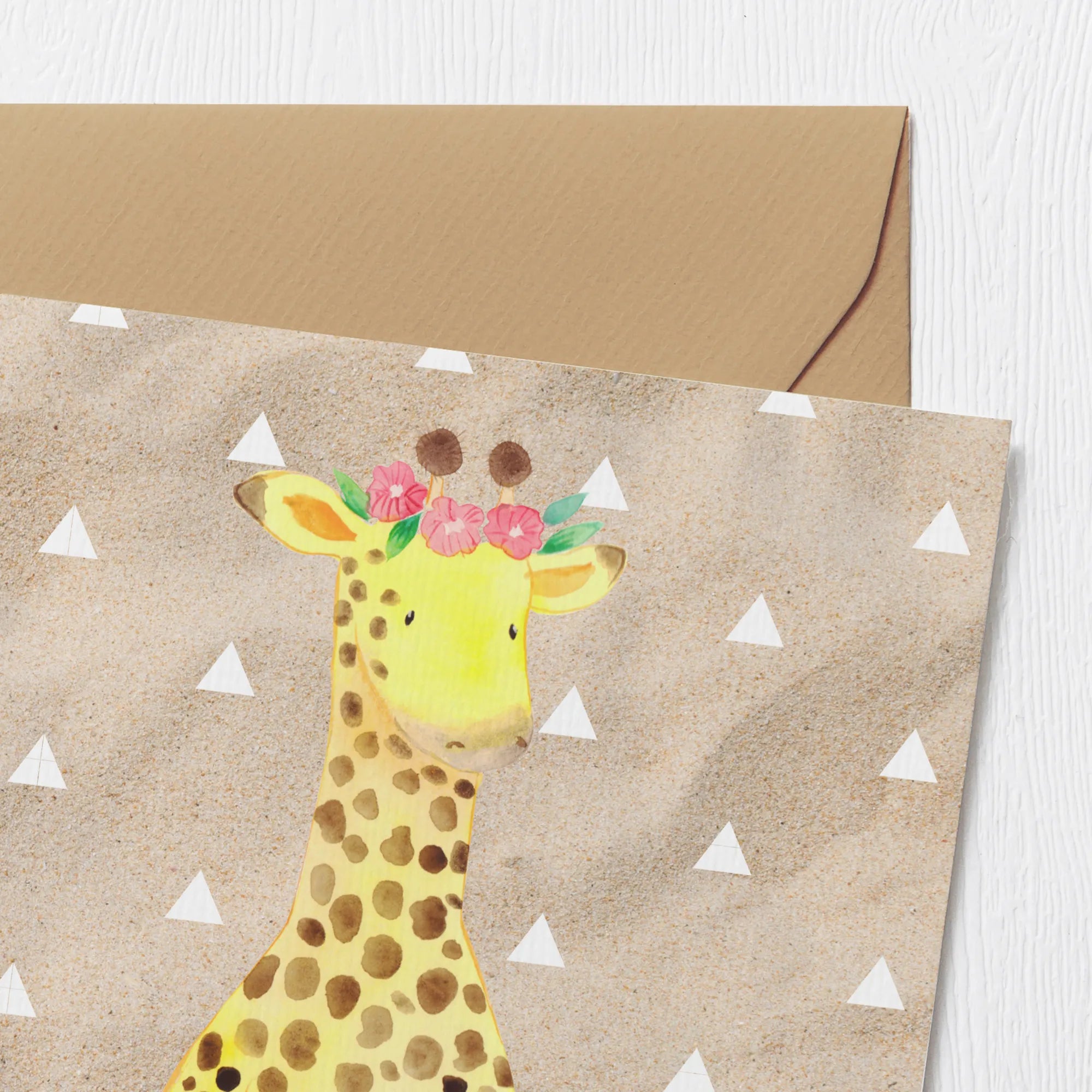 Die Vorderseite zeigt eine süße Giraffe, die voller Anmut und Charme einen Blumenkranz trägt, während die glatte, matte Innenseite Platz für Deine persönlichen Botschaften bietet. Egal, ob Du diese Karte zur Hochzeit, zum Geburtstag oder zu einem Jubiläum verschenken möchtest, sie bringt garantiert ein Lächeln ins Gesicht des Empfängers.