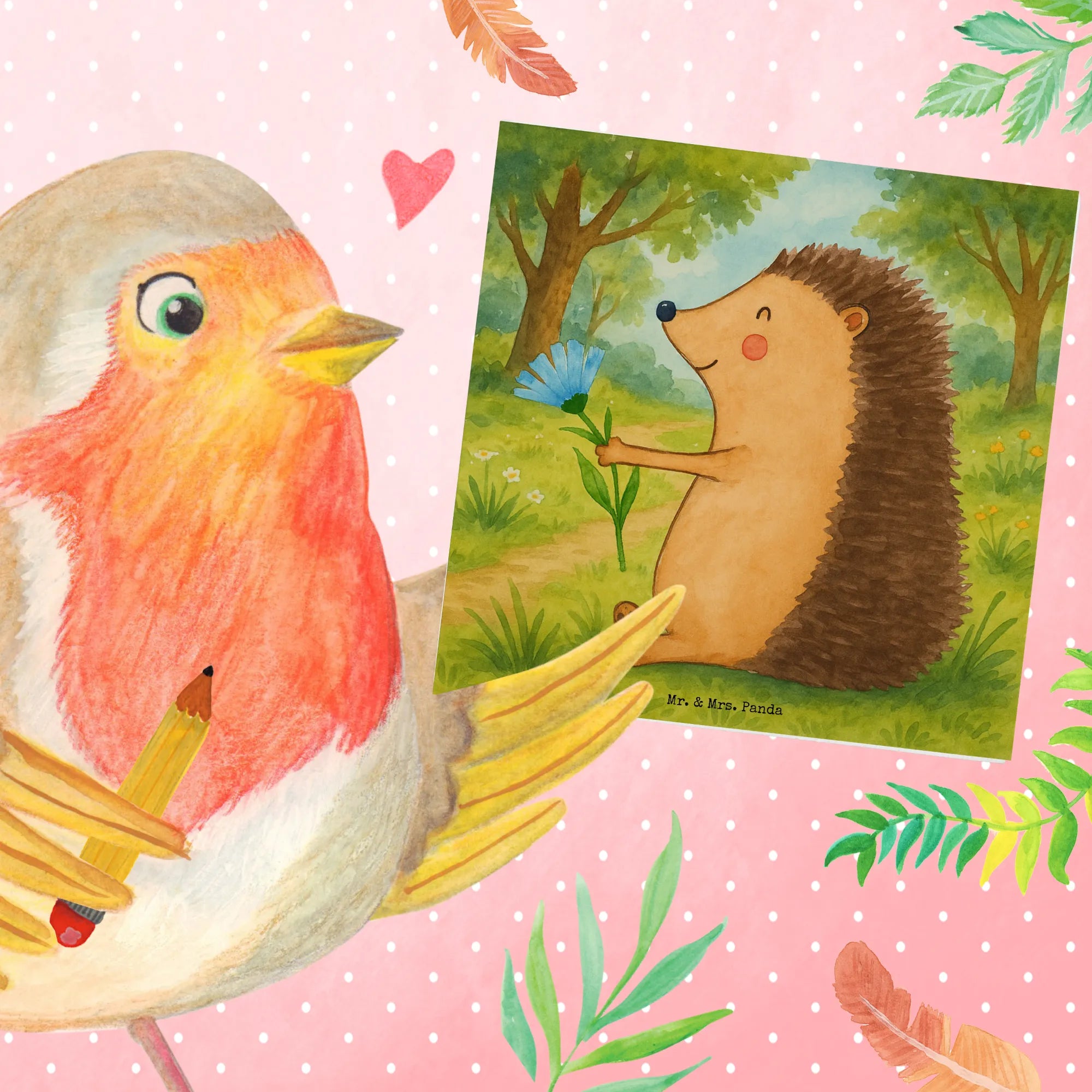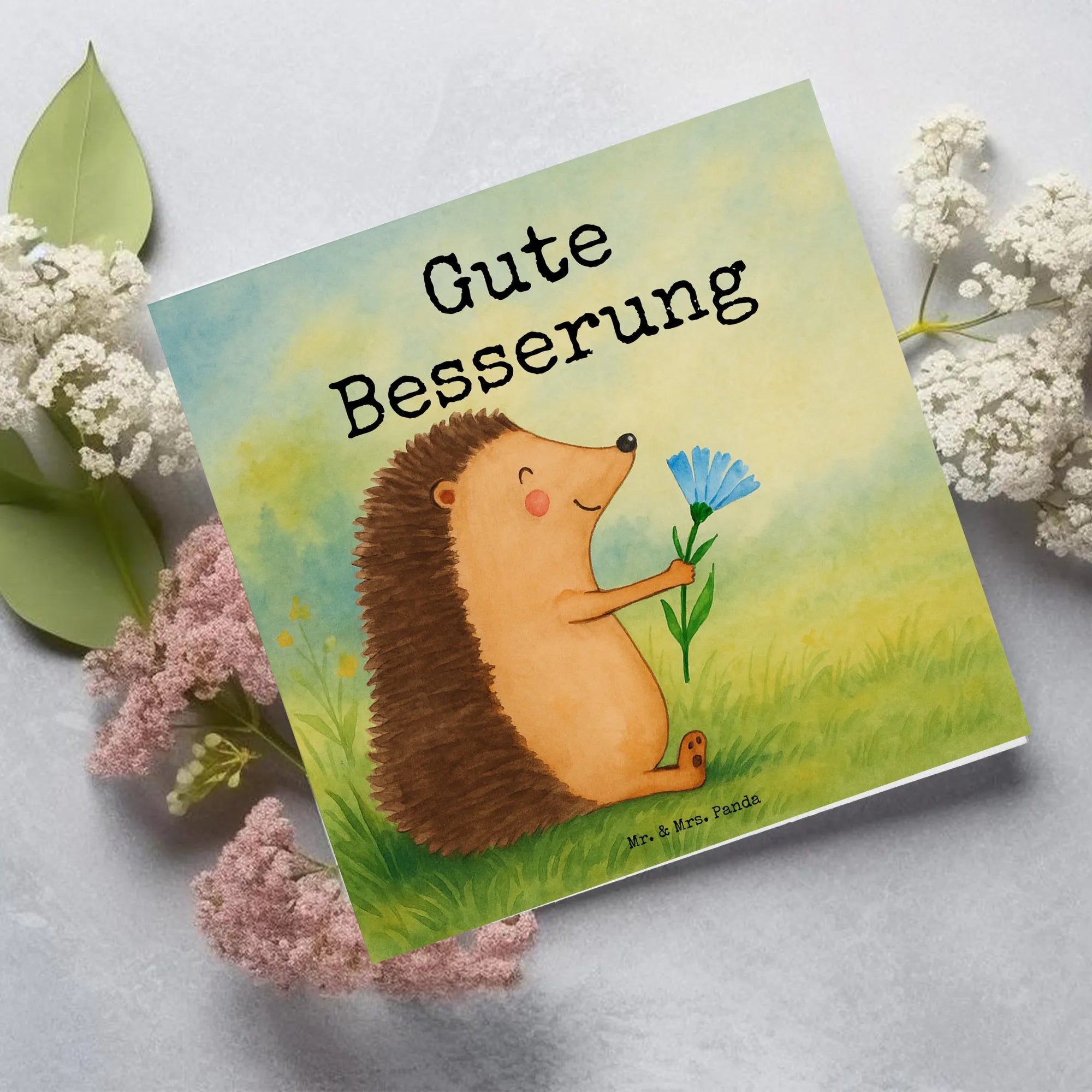 Mr. & Mrs. Panda - Igel mit Blume - Genesungswünsche Karte