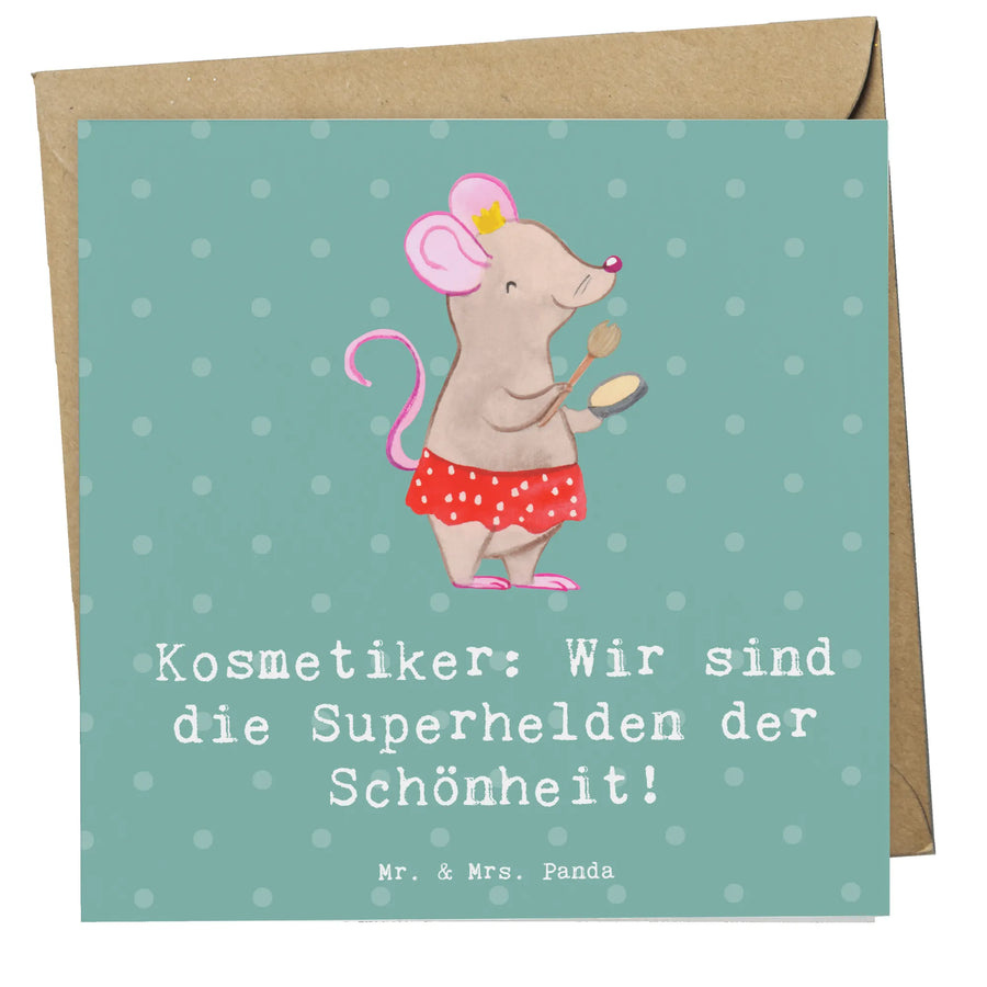 Die Deluxe Karte Kosmetiker von Mr. & Mrs. Panda ist das perfekte Geschenk für jeden Beautyliebhaber! Diese wunderschöne und besonders hochwertige quadratische Karte besteht aus edlem 300 Gramm Karton und ist mit einem einzigartigen Design versehen, das die Helden der Schönheit ehrt. Das Motto "Kosmetiker: Wir sind die Superhelden der Schönheit!" bringt mit einem charmanten Spruch eine liebevolle Note in die Karte und macht sie zu einem besonderen Geschenk für Freunde, Kollegen oder Familienmitglieder, die im Beauty-Bereich tätig sind oder einfach nur die Kosmetikwelt lieben.