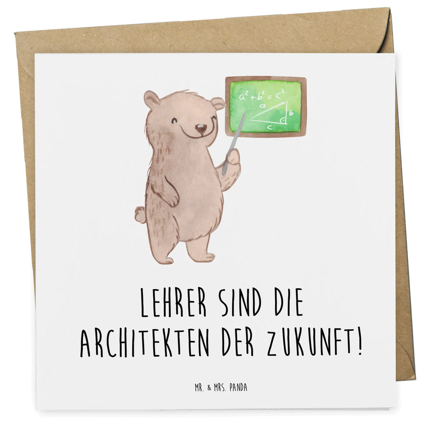 Verschenke Wertschätzung, die bleibt! Mit unserer Deluxe Karte „Lehrer“ aus der Danke-Kollektion von Mr. & Mrs. Panda schenkst du ein liebevolles Dankeschön, das Herz und Auge erfreut. Die Karte trägt den starken Slogan „Lehrer sind die Architekten der Zukunft!“ und ist die perfekte Dankeskarte für Lehrer und Lehrerinnen – ideal zum Schuljahresende, zur Verabschiedung, zum Lehrertag oder einfach als persönliche Anerkennung.