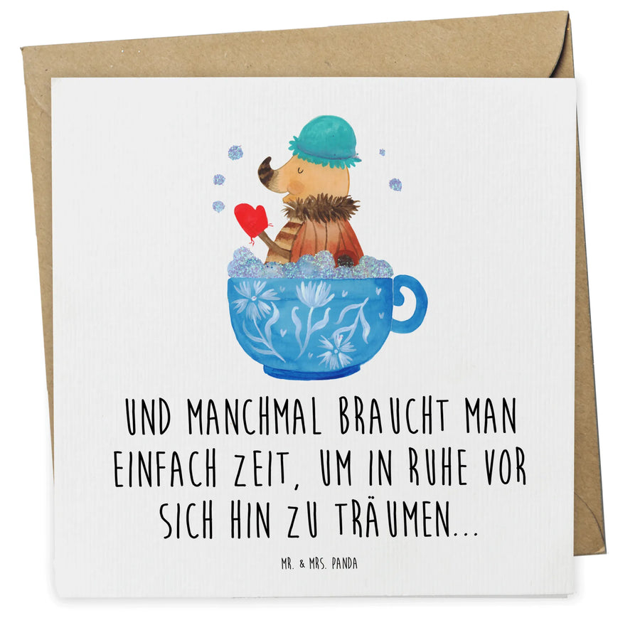 Das bezaubernde Motiv der Karte zeigt einen kleinen Nachtfalter, der es sich in einer Kaffeetasse gemütlich gemacht hat, während er ein entspannendes Schaumbad genießt. Über diesem niedlichen Bild steht der inspirierende Spruch: "Und manchmal braucht man einfach Zeit, um in Ruhe vor sich hin zu träumen...". Diese Botschaft lädt dazu ein, ein wenig Zeit für sich selbst zu nehmen und den Alltag hinter sich zu lassen.