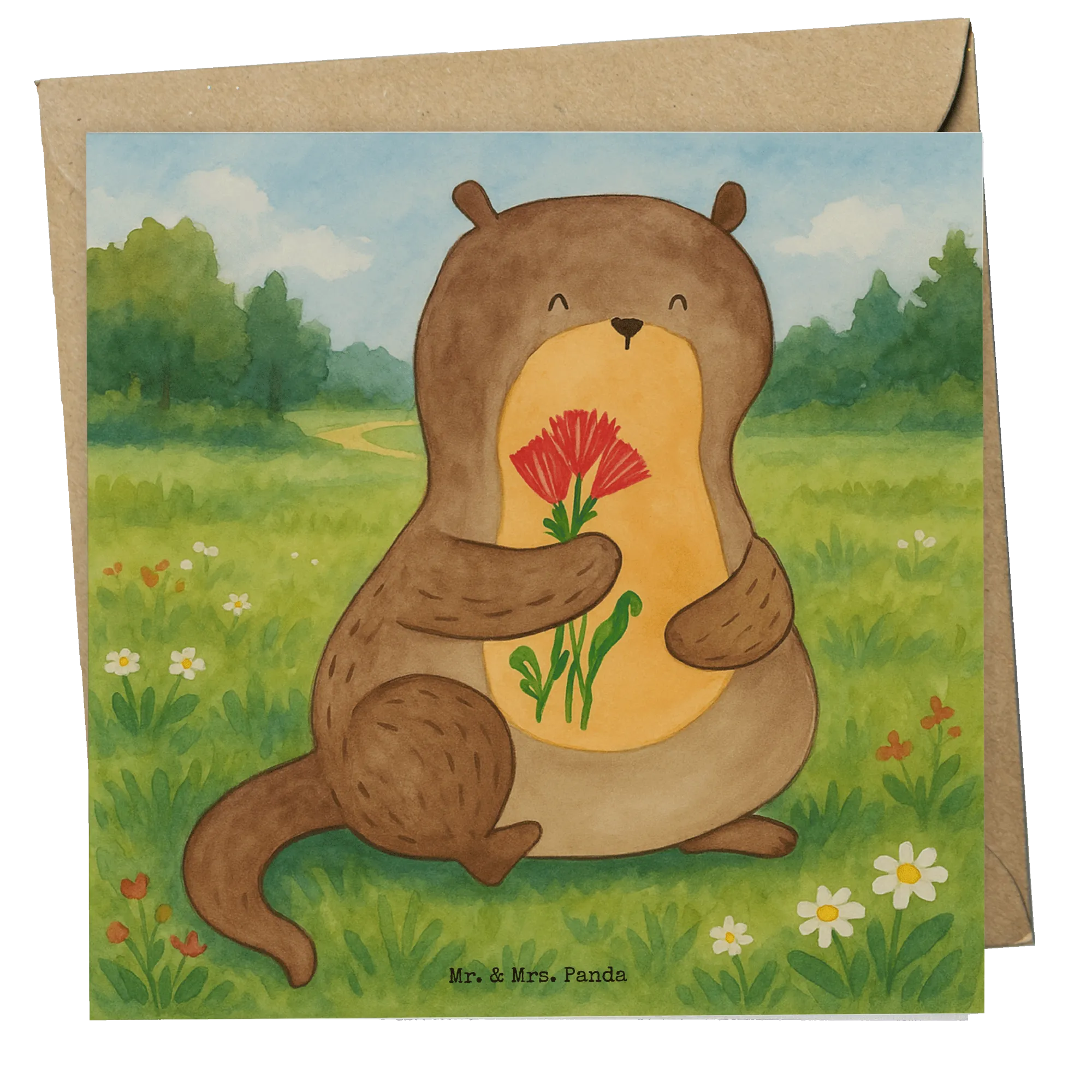 Deluxe Karte Otter Blumenstrauß Design