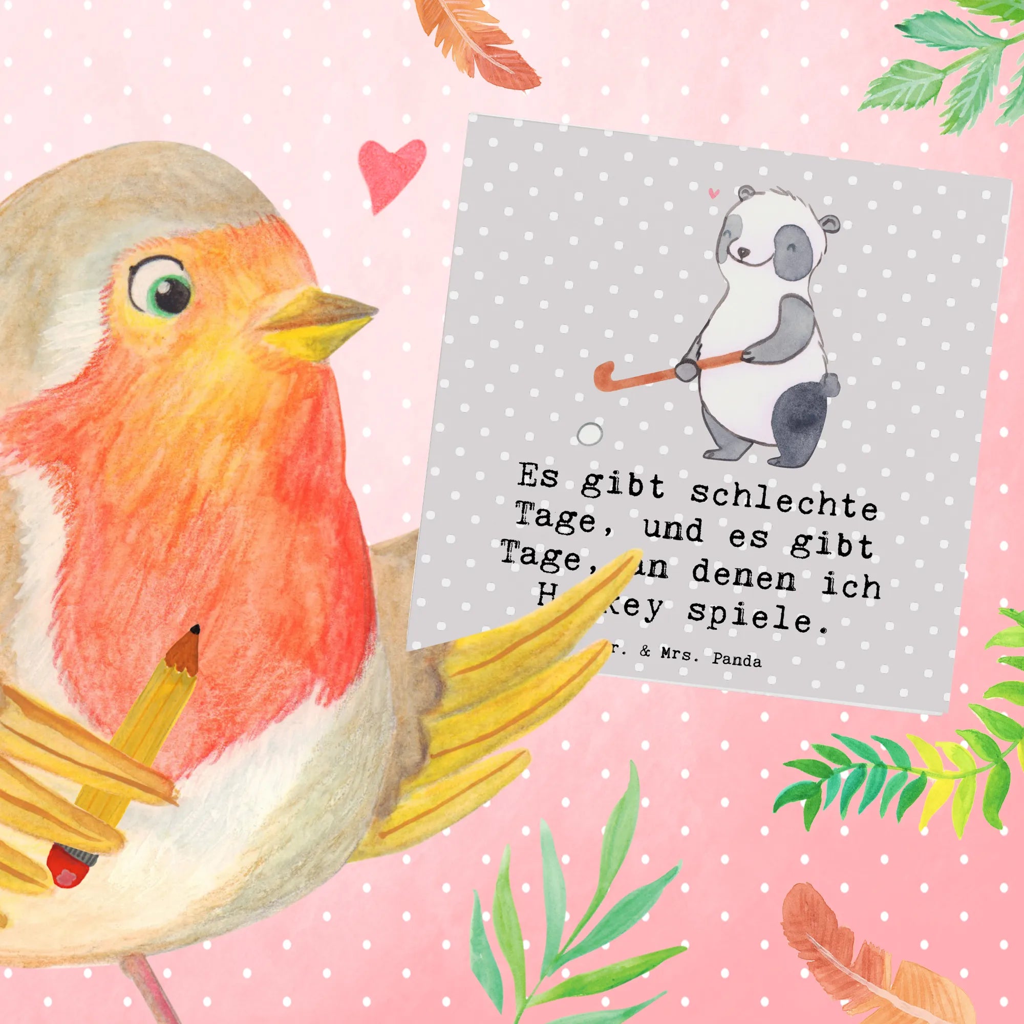 Mit über 200 handgemalten Motiven aus der Hobby & Sport Kollektion von Mr. & Mrs. Panda gibt es für jedes Sportherz das passende Geschenk. Schenke Freude und zeige deine Wertschätzung mit dieser hochwertigen Klappkarte für jeden Hockey-Begeisterten.
