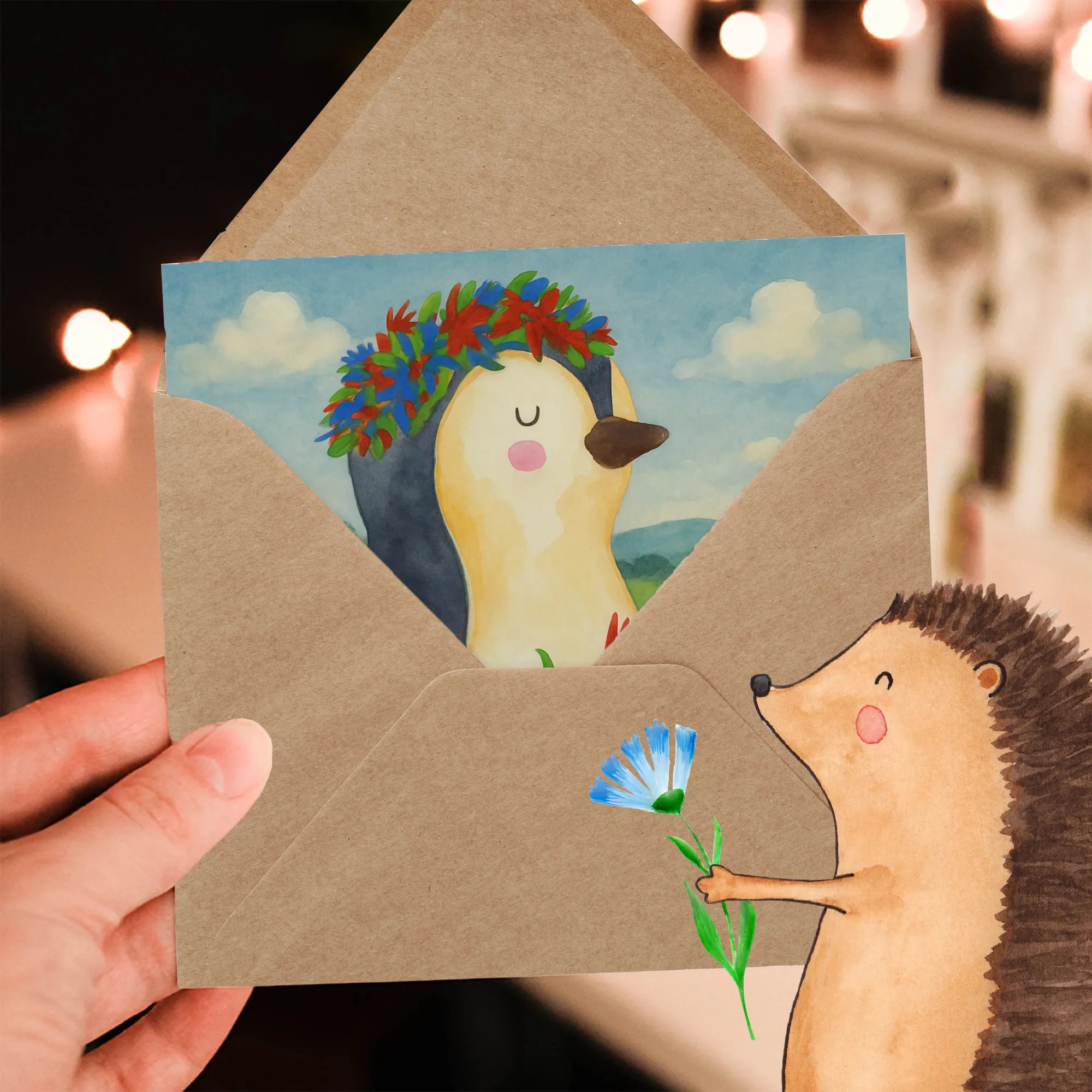 Pinguin mit Blumenkranz - Das perfekte Motiv für Lebensziele