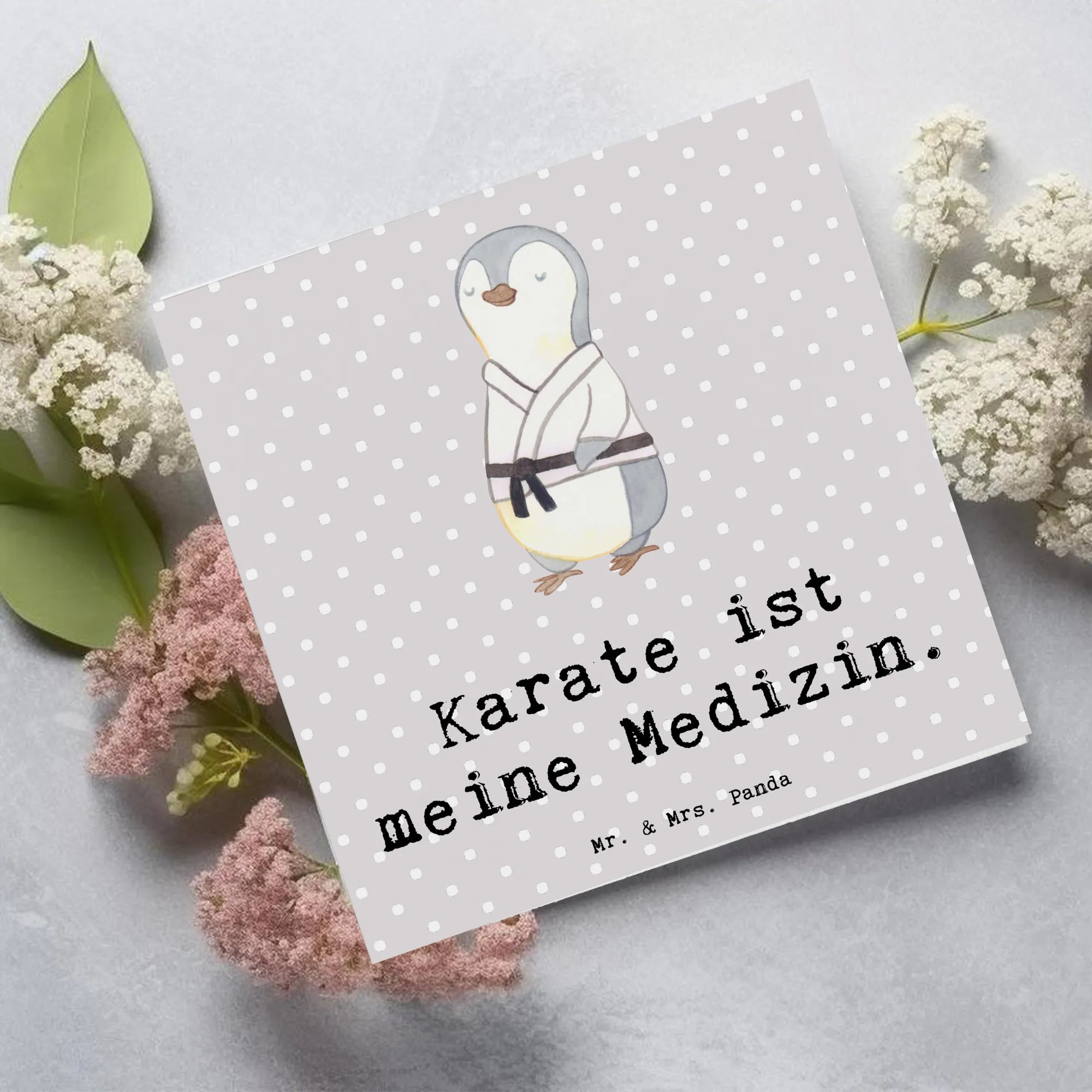Deluxe Karte Pinguin Karate - mit Spruch - Grau Pastell