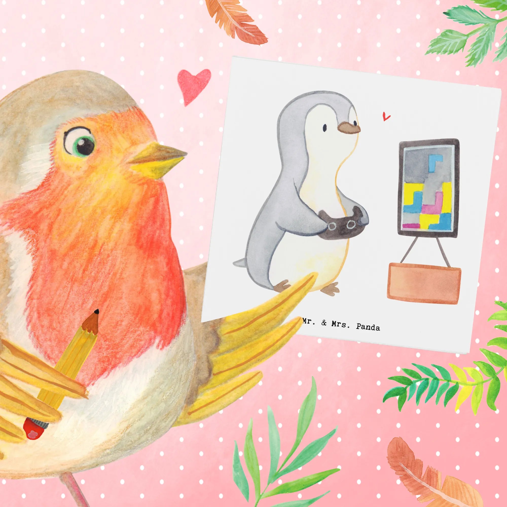 Entdecke die Deluxe Karte "Pinguin Zocken Medizin" aus der liebevollen Kollektion Hobby & Sport von Mr. & Mrs. Panda!