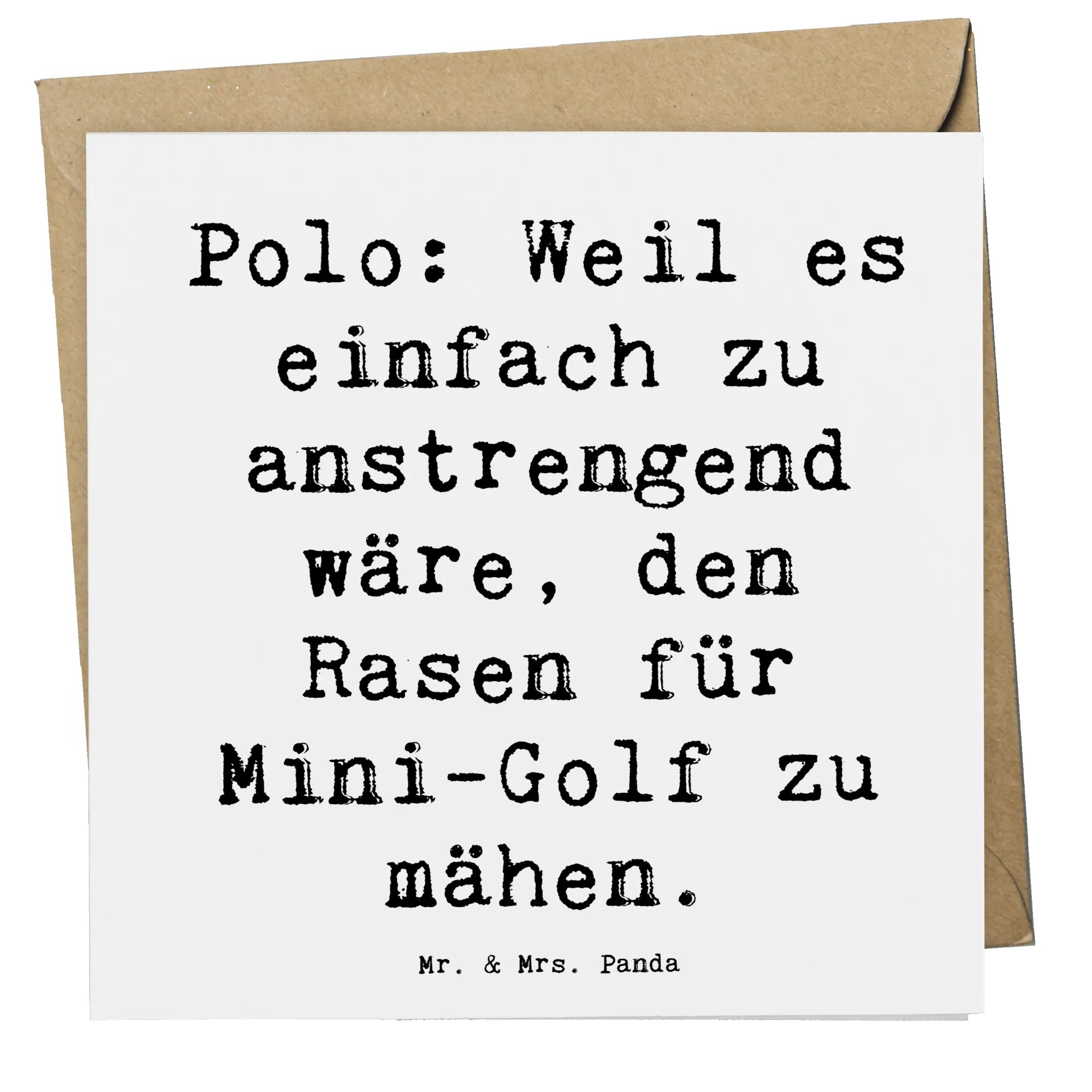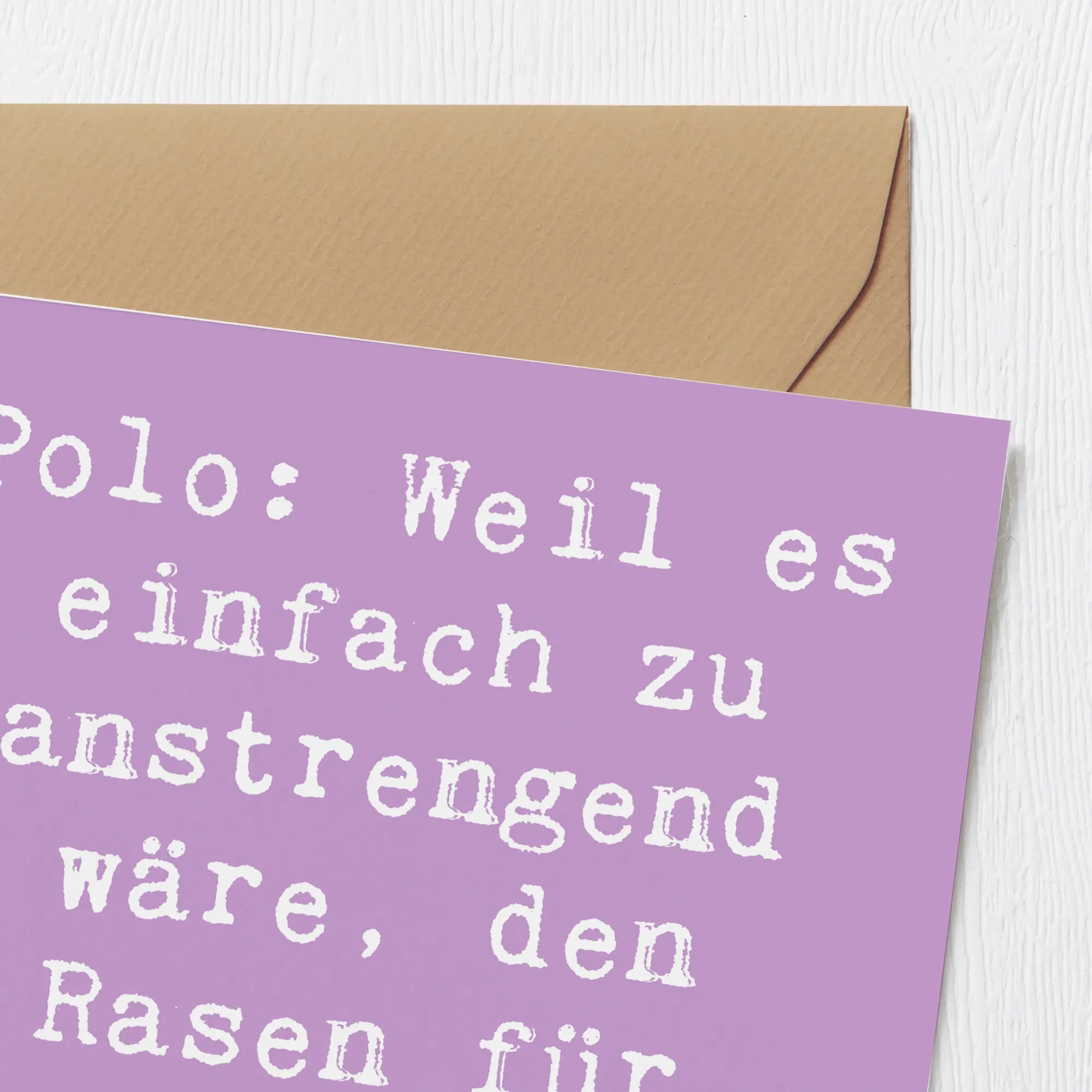 Auf der Vorderseite prangt der spritzige Spruch: 'Polo: Weil es einfach zu anstrengend wäre, den Rasen für Mini-Golf zu mähen.' und sorgt für ein Schmunzeln bei jedem Sportliebhaber.