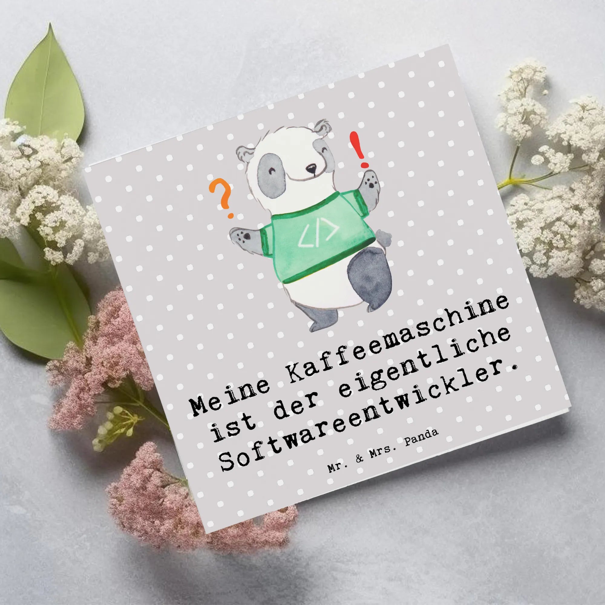 Schenke Anerkennung, Humor und Stil – mit der Deluxe Karte „Softwareentwickler“ aus der Berufe-Kollektion von Mr. & Mrs. Panda.