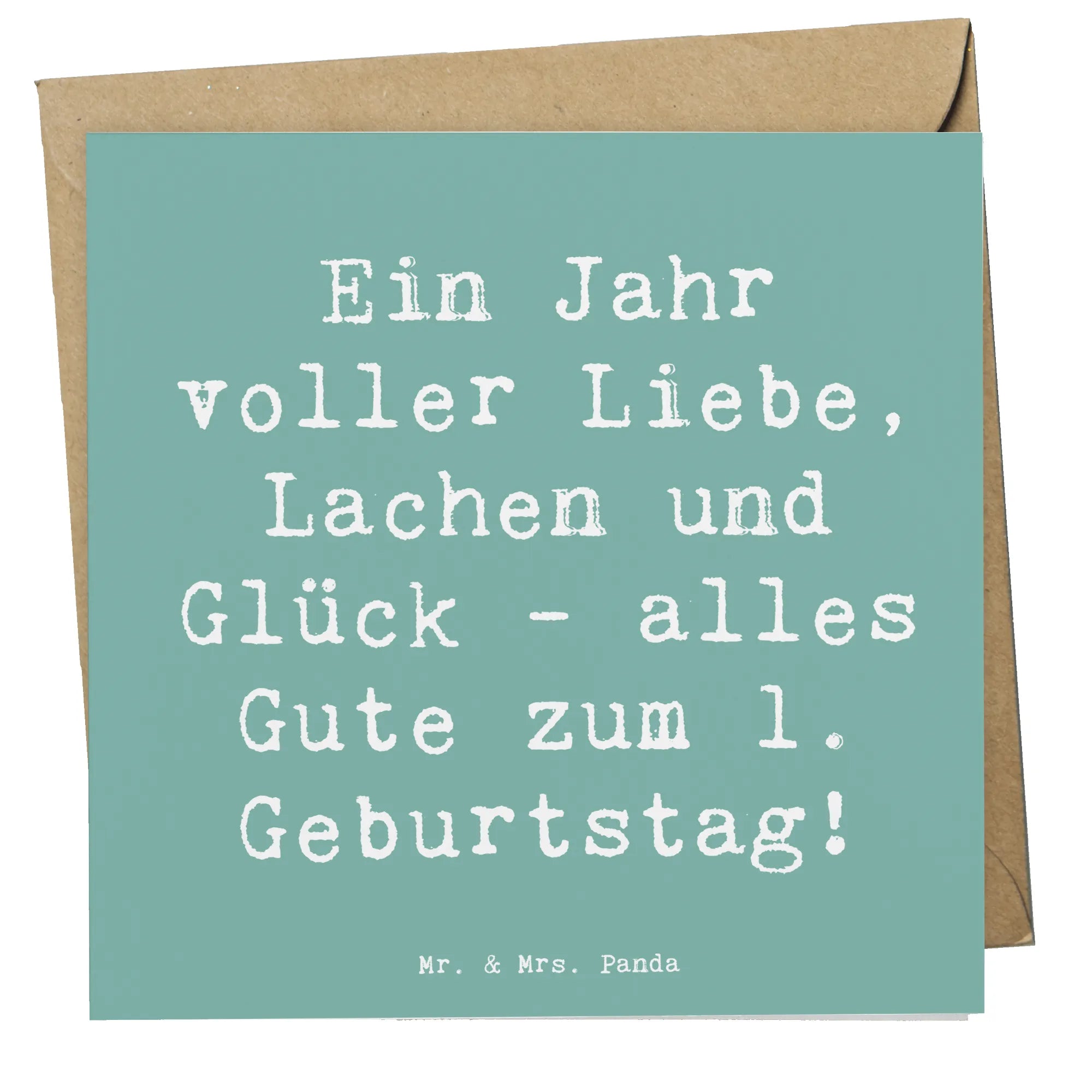 Die Deluxe Karte zum 1. Geburtstag von Mr. & Mrs. Panda ist das perfekte Geschenk, um diesen besonderen Tag gebührend zu feiern! Diese wunderschöne und besonders hochwertige quadratische Karte ist mit dem liebevollen Spruch "Ein Jahr voller Liebe, Lachen und Glück - alles Gute zum 1. Geburtstag!" bedruckt und versprüht Freude und Lebenslust.