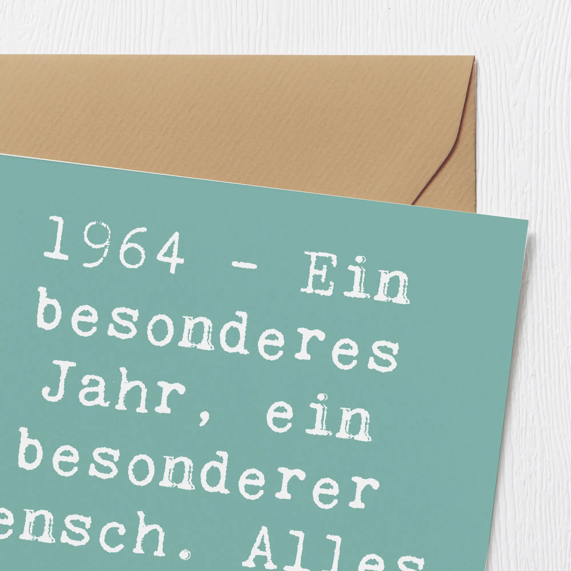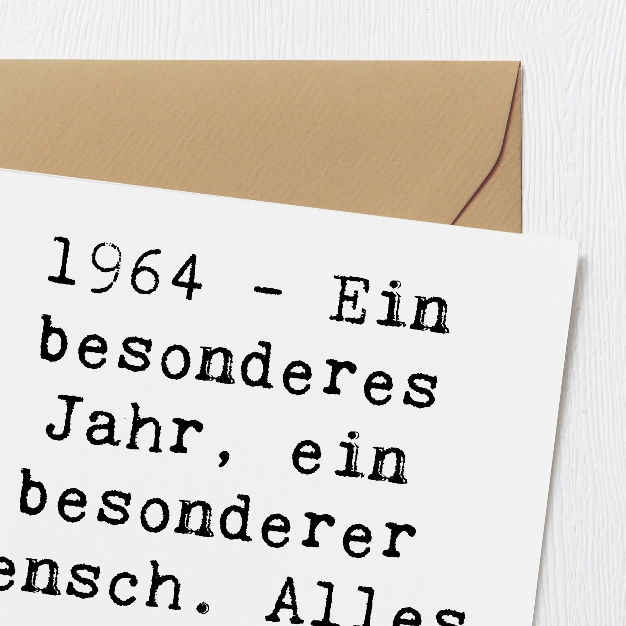 Die Vorderseite dieser beeindruckenden Karte ziert der liebevolle Spruch "1964 - Ein besonderes Jahr, ein besonderer Mensch. Alles Gute zum Geburtstag!" - eine persönliche Note, die perfekt zu jedem Geburtstagskind passt. Die matte Innenseite der Karte bietet ausreichend Platz für deine eigenen Worte, damit du deine Glückwünsche individuell gestalten kannst.