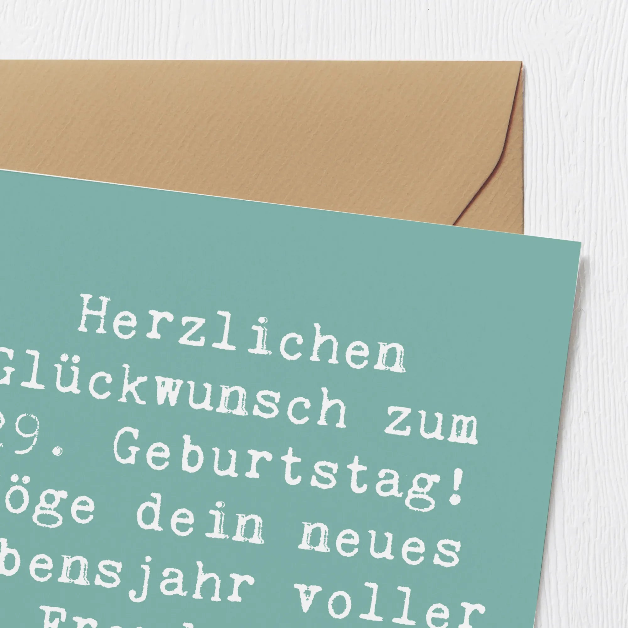 Verpackt in einem edlen Umschlag, wird die Deluxe Karte zum 29. Geburtstag zu einem Präsent, das in Erinnerung bleibt. Mit jedem Gruß, den du darauf hinterlässt, schaffst du schöne Erinnerungen für das Geburtstagskind. Verschenke diese Karte als Teil eines umfangreichen Geburtstagsgeschenks oder als eigenständige Aufmerksamkeit – in jedem Fall wird die Karte glänzen und Herzen erwärmen. Lass uns gemeinsam feiern und das neue Lebensjahr voller Freude und Abenteuer begrüßen!