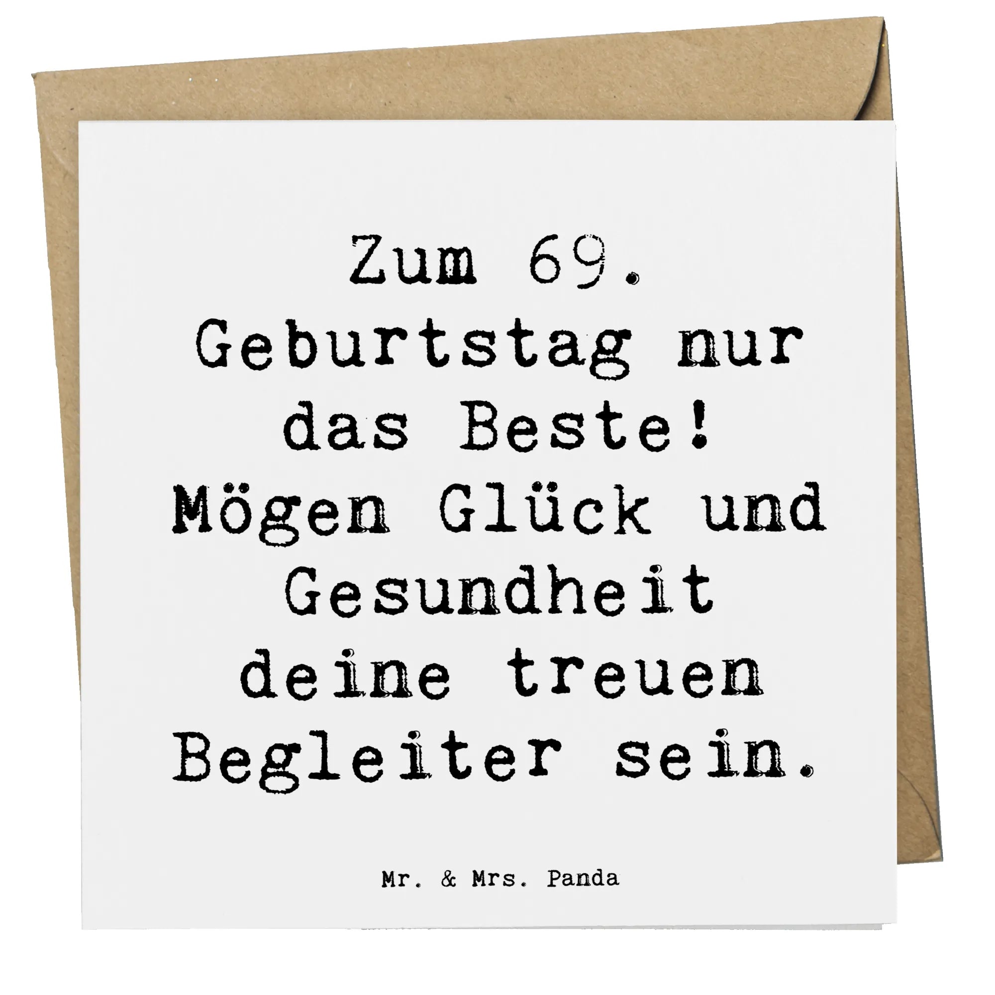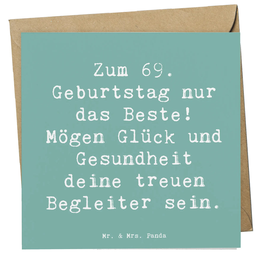 Diese hochwertige, quadratische Karte (140 mm x 140 mm) bietet ausreichend Platz, um persönliche Grüße und Glückwünsche zu hinterlassen. Mit dem liebevollen Motiv, das von Mrs. Panda handgezeichnet wurde, strahlt die Karte Lebensfreude und Wärme aus. Der Spruch "Zum 69. Geburtstag nur das Beste! Mögen Glück und Gesundheit deine treuen Begleiter sein." spricht direkt aus dem Herzen und macht die Karte zu einem emotionalen Highlight.