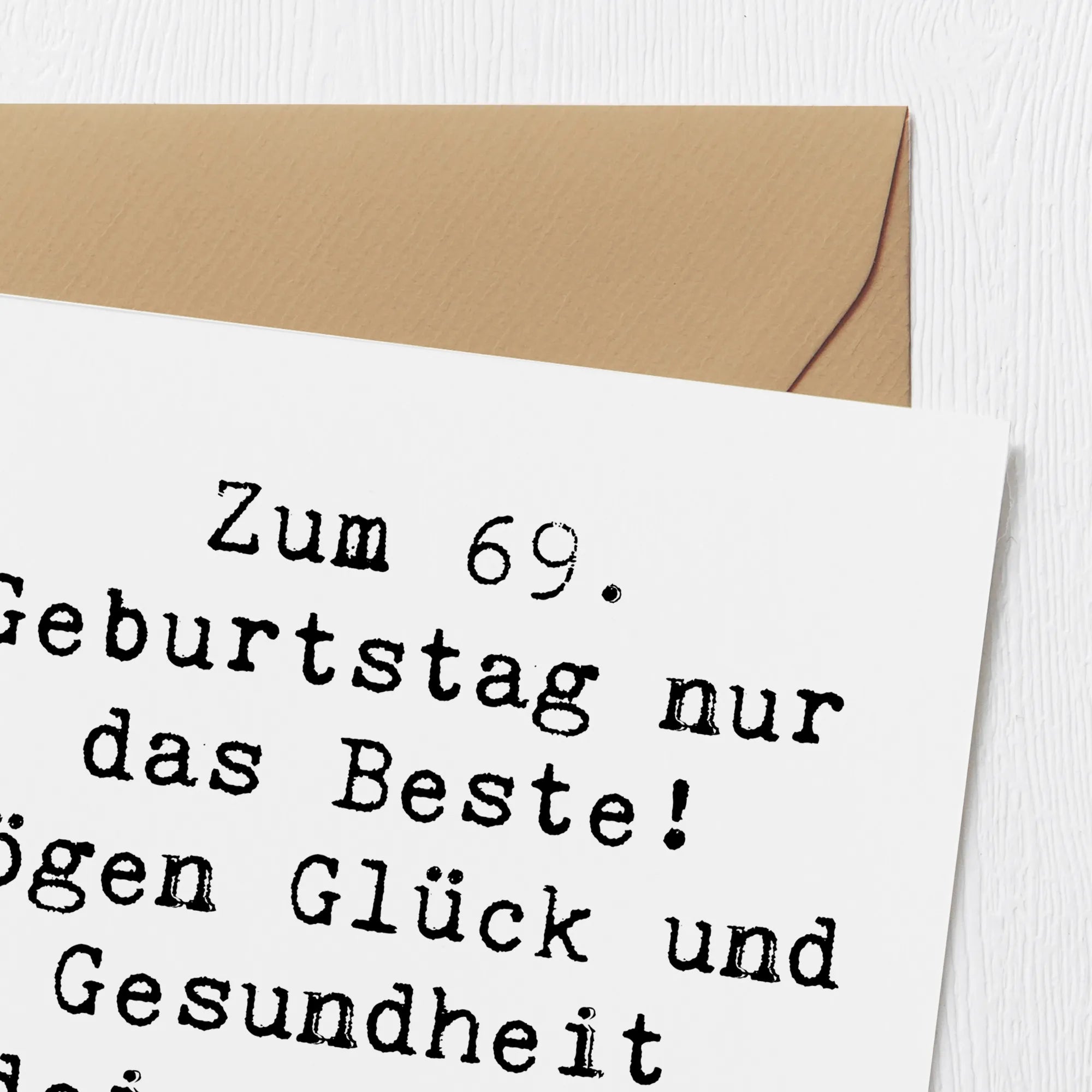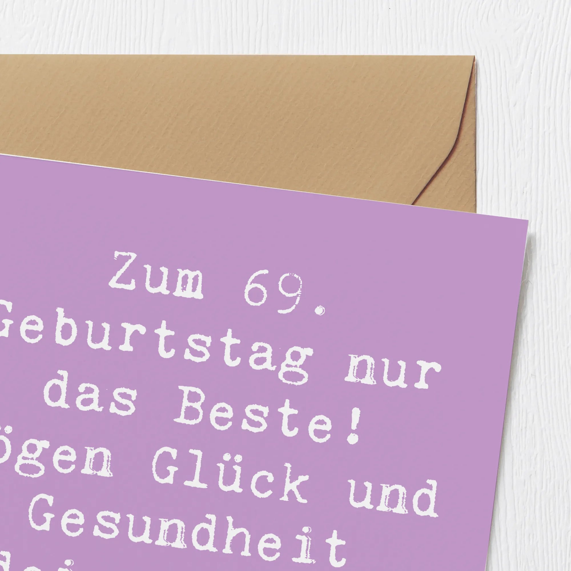 Die hochglänzend veredelte Vorderseite ziert einen liebevollen Spruch: "Zum 69. Geburtstag nur das Beste! Mögen Glück und Gesundheit deine treuen Begleiter sein." Dies macht die Karte nicht nur zu einer tollen Grußkarte, sondern auch zu einem bleibenden Erinnerungsstück.