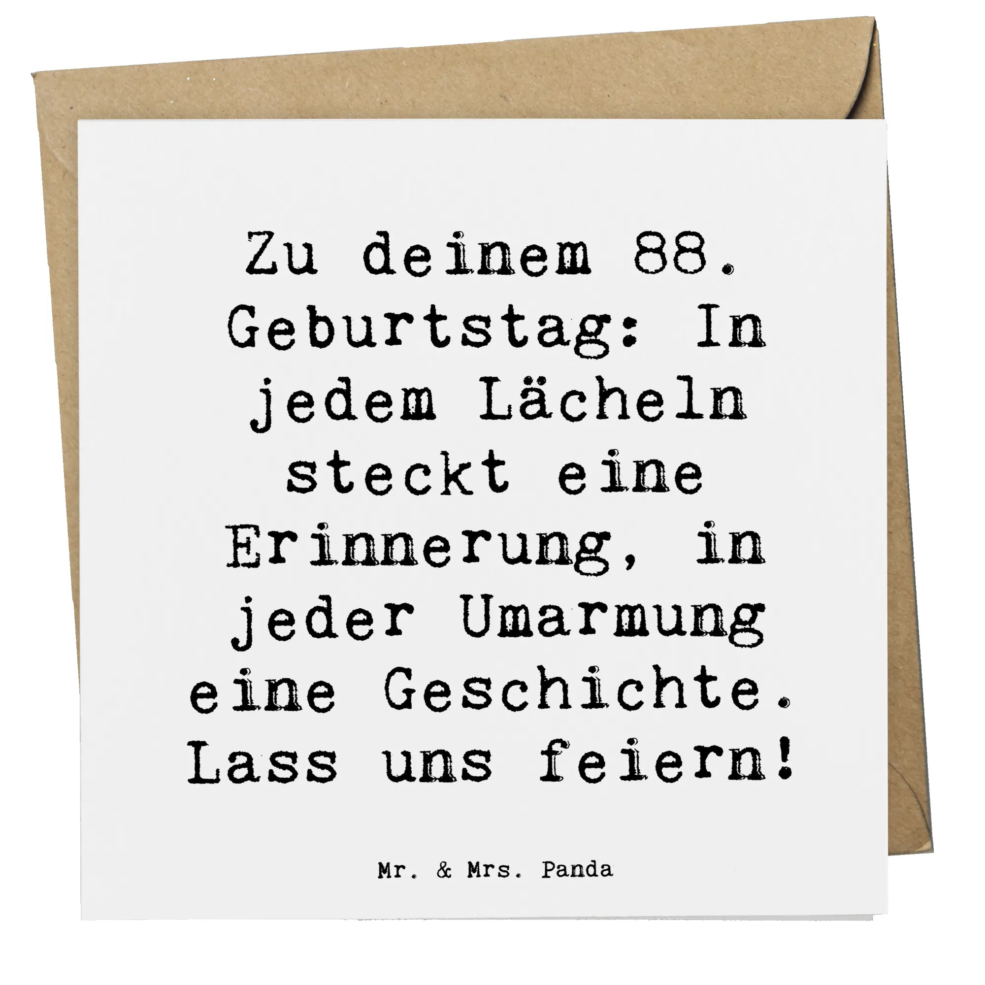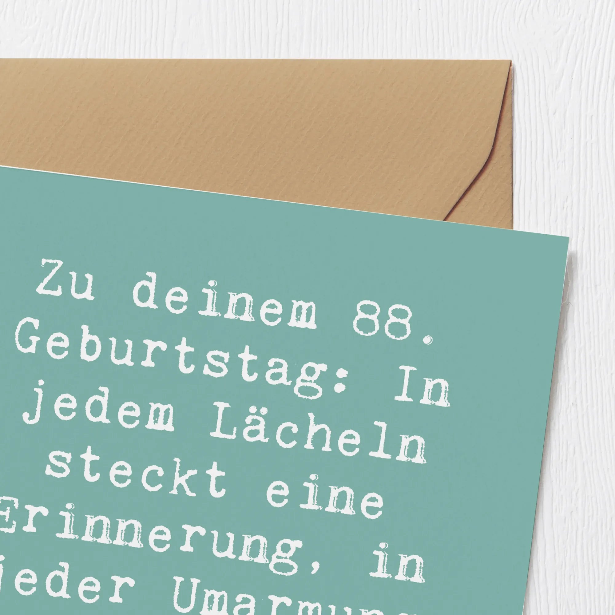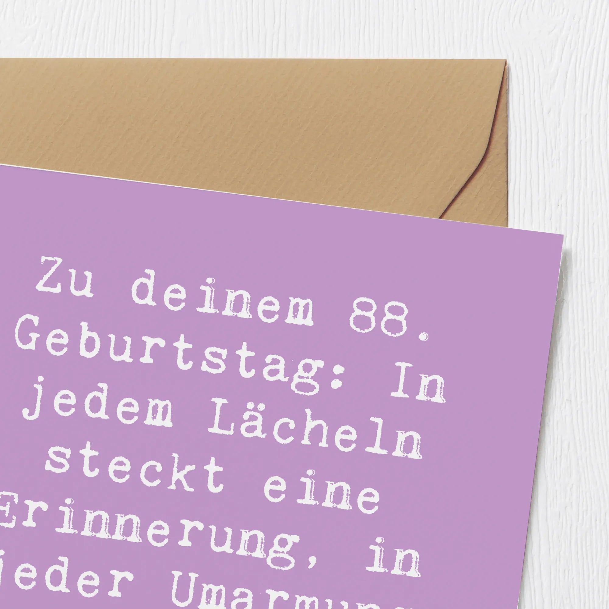 Mit einem liebevollen Spruch bedruckt – "Zu deinem 88. Geburtstag: In jedem Lächeln steckt eine Erinnerung, in jeder Umarmung eine Geschichte. Lass uns feiern!" – bringt diese Karte Freude und Wärme in jede Feier.