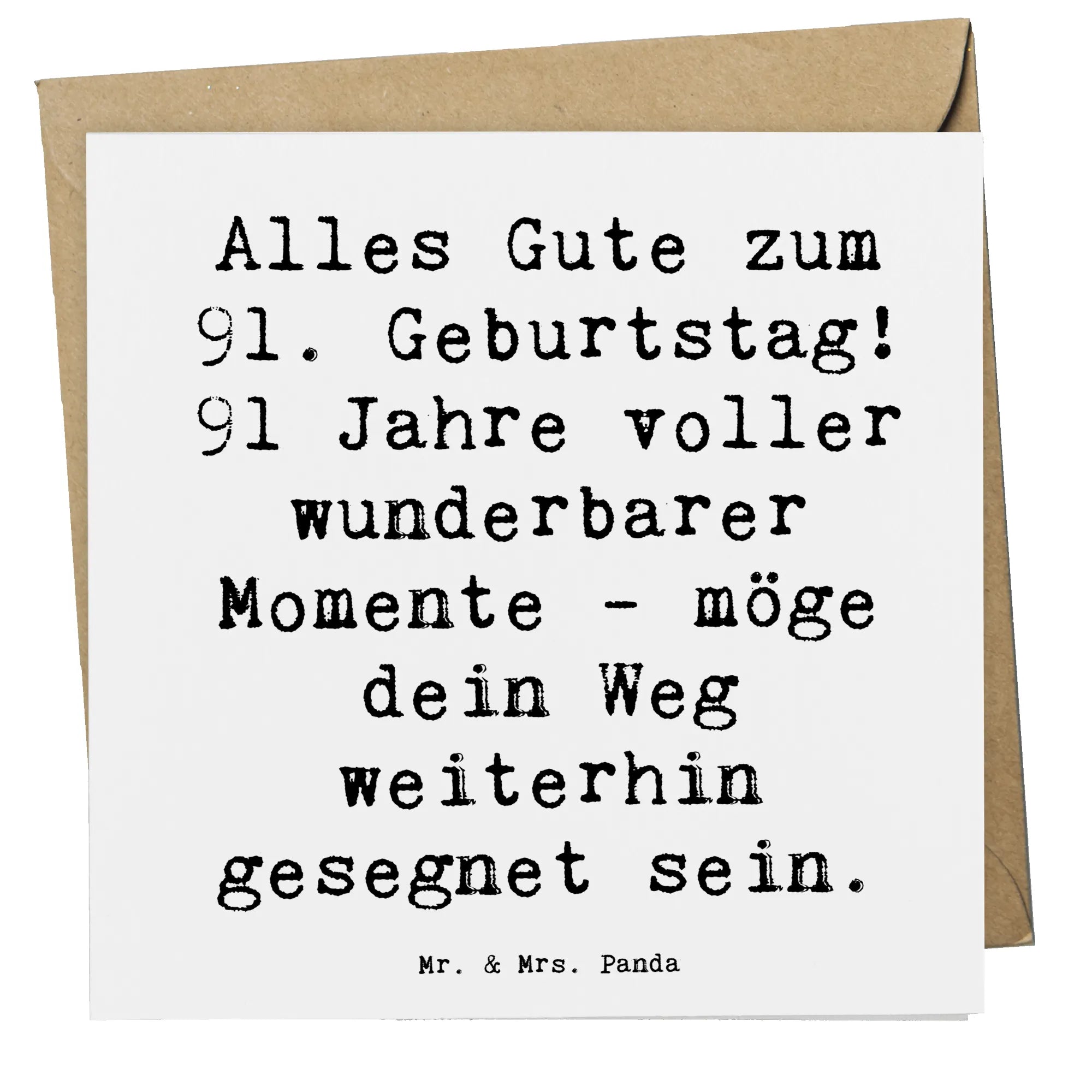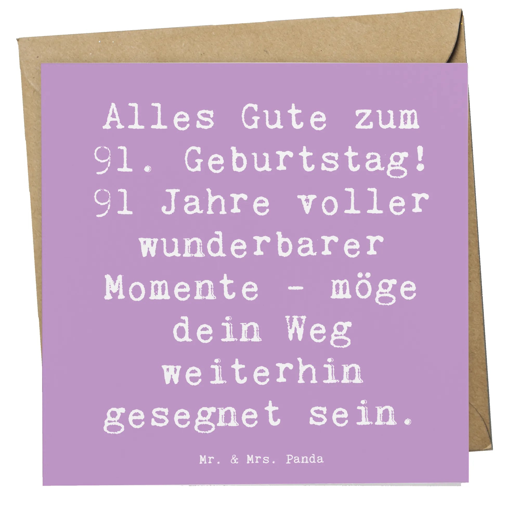 Mit dieser Karte sorgst du für strahlende Augen und freudige Herzen. Mache den 91. Geburtstag zu einem unvergesslichen Erlebnis, das lange in Erinnerung bleibt. Verschenke Freude und Liebe mit der Deluxe Karte von Mr. & Mrs. Panda und lass die Geburtstagsfeier zu einem Fest der Freundschaft und des Zusammenkommens werden! 🎈
