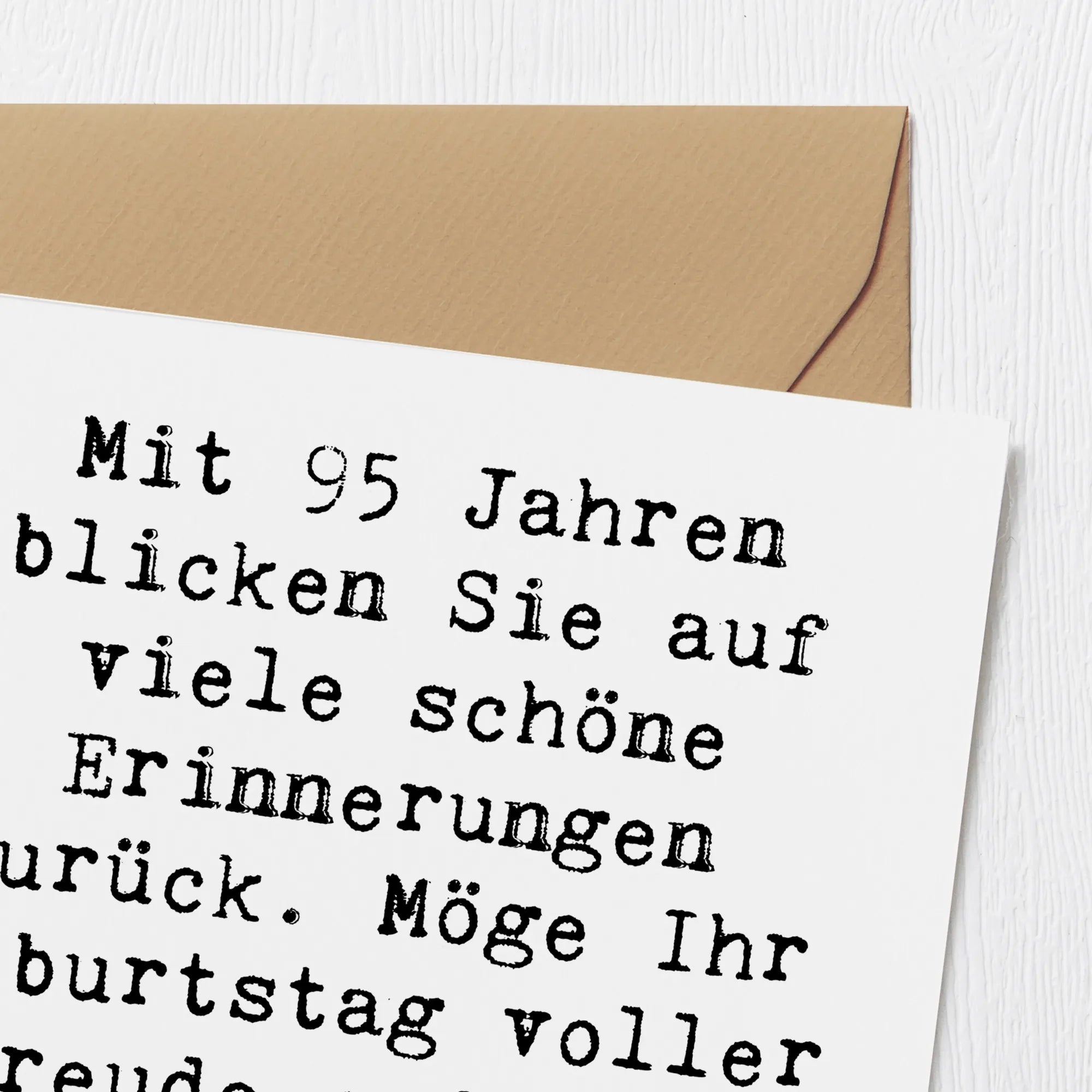 Finde die perfekte Glückwunschkarte: Diese Deluxe Karte ist ideal als Karte zum 95. Geburtstag, Geburtstagskarte 95, Grußkarte 95 Jahre oder als stilvolle Klappkarte für besondere Menschen. Mit Mr. & Mrs. Panda schenkst Du nicht nur eine Karte, sondern ein kleines Erinnerungsstück, das lange bewahrt wird.