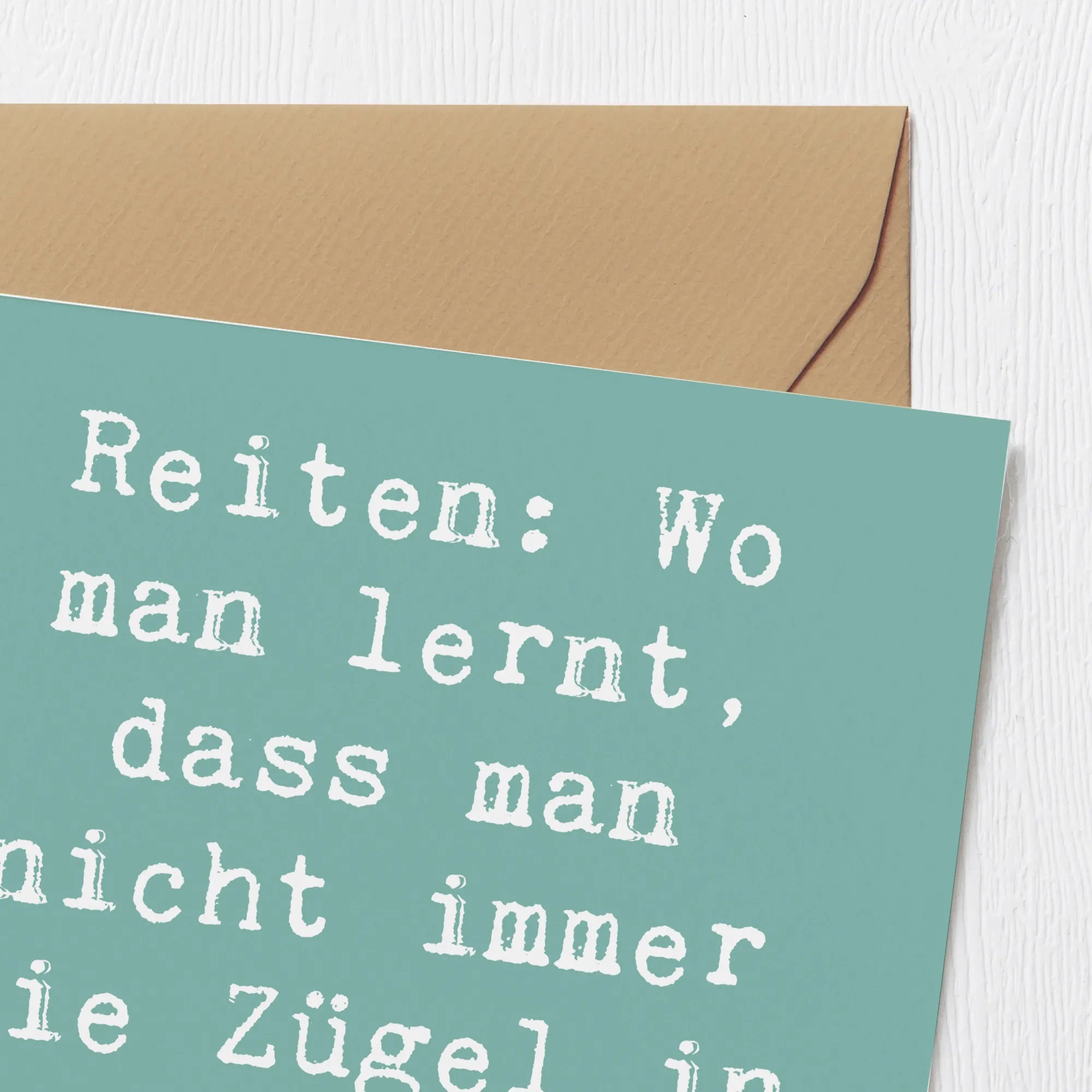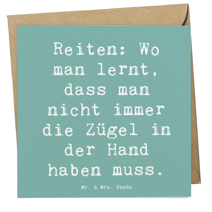 Entdecke unsere Deluxe Karte mit dem wunderschönen Motiv "Reiten: Wo man lernt, dass man nicht immer die Zügel in der Hand haben muss." von Mr. & Mrs. Panda!