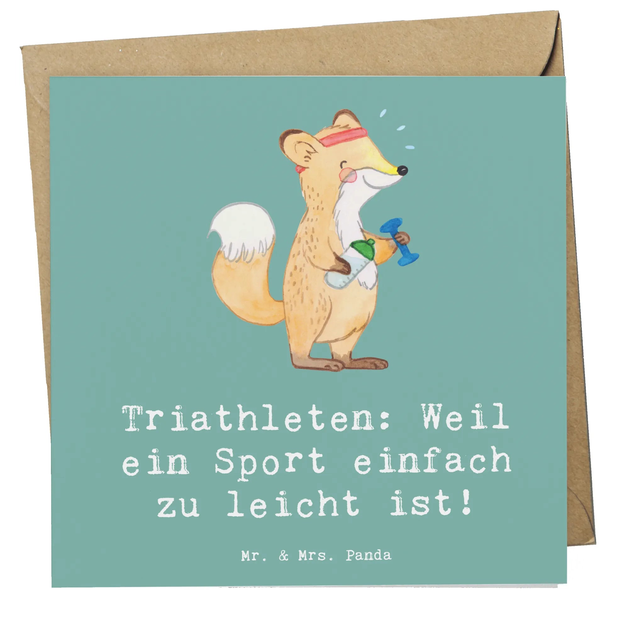 Suchst du eine besondere Grußkarte für einen sportlichen Menschen? Unsere quadratische Deluxe Karte aus der Sportarten-Kollektion von Mr. & Mrs. Panda ist genau das richtige: liebevoll handgemaltes Aquarellmotiv, kombiniert mit dem frechen Spruch „Triathleten: Weil ein Sport einfach zu leicht ist!“ – perfekt, um Respekt und Humor zu verbinden. 🏊♂️🚴♀️🏃♂️