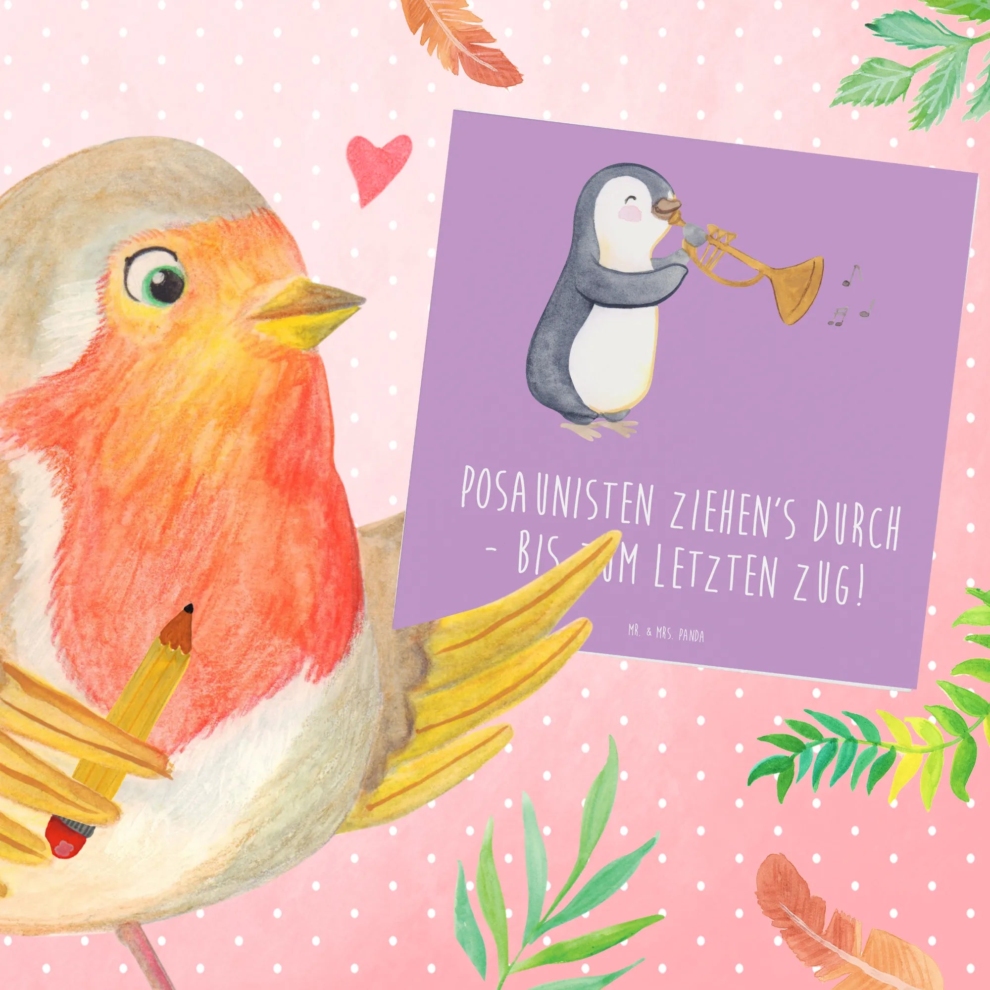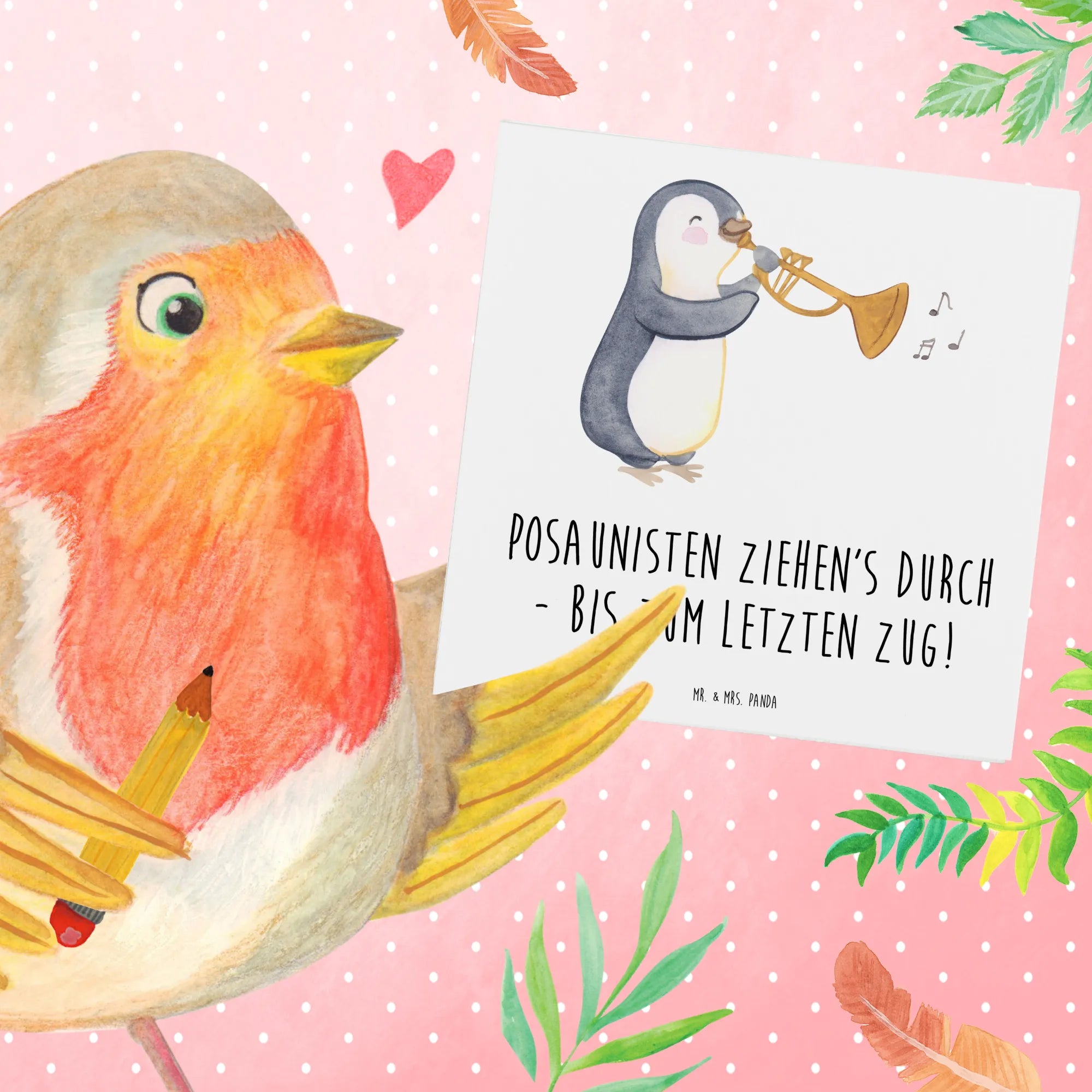 Diese wunderschöne Deluxe Karte mit dem Motiv 'Posaunisten ziehen's durch - bis zum letzten Zug!' aus der Sammlung Musizieren & Instrumente von Mr. & Mrs. Panda ist ein wahrhaft perfektes Geschenk für alle Musikbegeisterten und insbesondere für Posaunisten! Ob zum Geburtstag, zur Hochzeit oder als Glückwunschkarte zu besonderen Anlässen – dieses liebevolle Design wird garantiert ein Lächeln auf die Gesichter der Beschenkten zaubern.