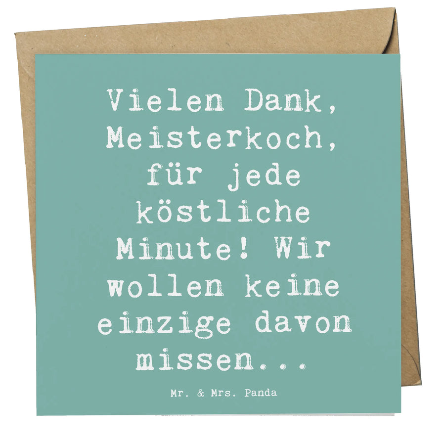 Die Deluxe Karte Koch von Mr. & Mrs. Panda ist das perfekte Geschenk für jeden, der gerne kocht oder kochen lernt. Mit dem liebevollen Spruch "Vielen Dank, Meisterkoch, für jede köstliche Minute! Wir wollen keine einzige davon missen..." bringst du Deine Wertschätzung für die kulinarischen Talente in Deinem Leben zum Ausdruck.