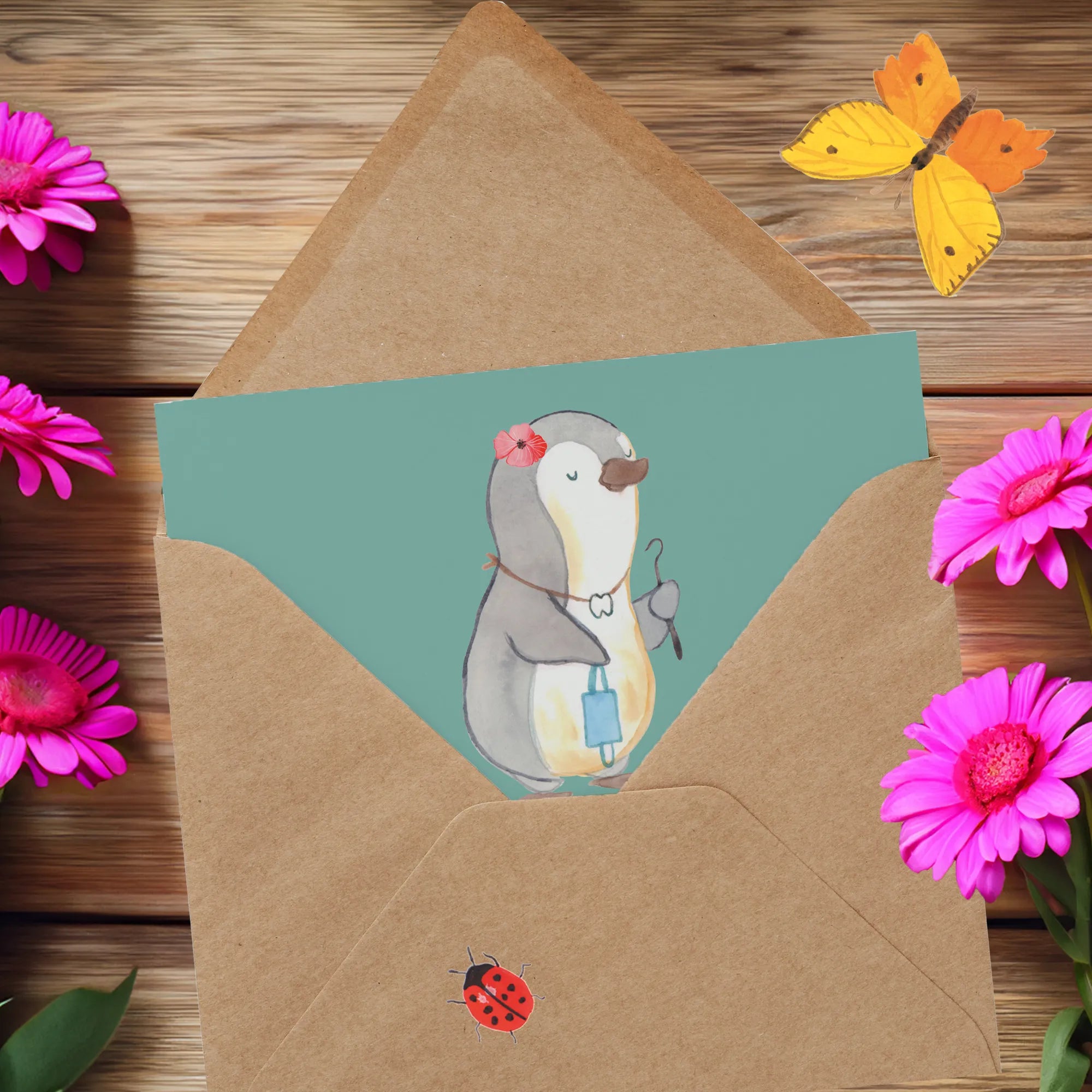 Verschenke Freude und ein Stück Humor mit dieser einzigartigen Karte und mache anderen eine Freude! Egal, ob du sie als Grußkarte für einen Freund, Kollegen oder ein Familienmitglied verwendest, die Herren der Dentalmedizin werden diese Karte lieben. Ein echter Hingucker, der sich perfekt als Dekoration im Wartezimmer einer Zahnarztpraxis eignet. Entdecke die fantastische Welt der Berufe mit Mr. & Mrs. Panda und finde genau das richtige für deine lieb gewonnenen Menschen!