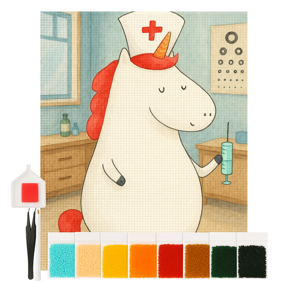 Bestelle jetzt dein Diamond Painting Einhorn Krankenschwester und schenke magische Momente, Entspannung und ein strahlendes Andenken. Perfekt für Geburtstage, Abschiede, Dienstagsnachmittage oder als Dankeschön für Heldinnen und Helden im Gesundheitswesen. 🦄✨