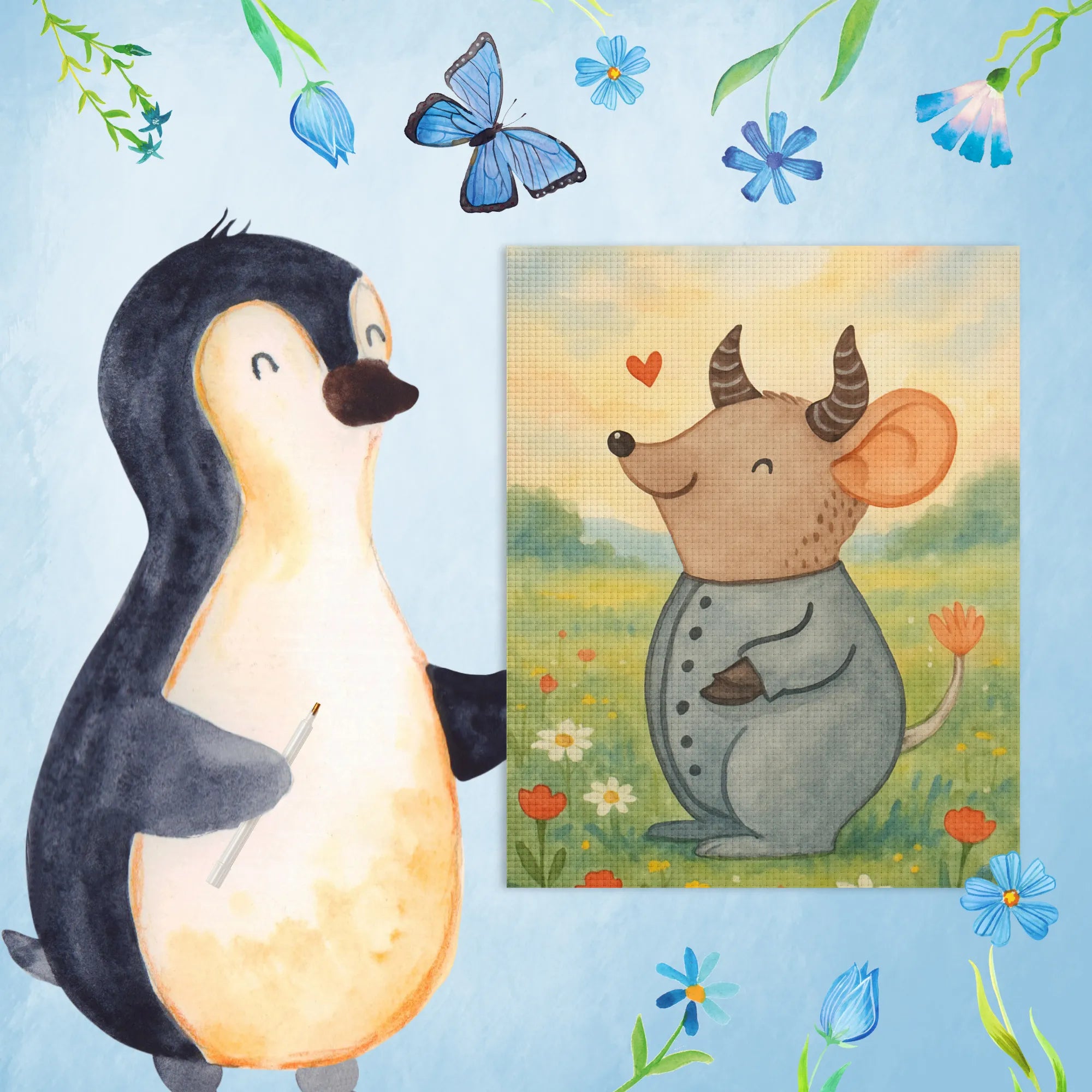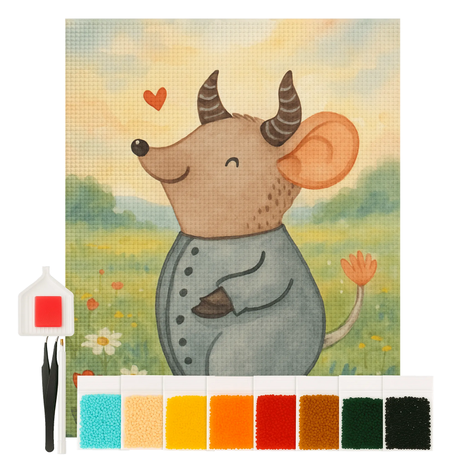 Verewige die fröhliche Maus – unser Symbol für das Sternzeichen Stier! Sie strahlt eine herzerwärmende Freude aus und repräsentiert die Charakterzüge eines Stiers auf spielerische Art. Ihre geschwungenen Hörner und das lässige, gemusterte Outfit machen sie zum perfekten Begleiter durchs Leben. Die Maus vermittelt eine Botschaft von Zusammenhalt und Loyalität, ideal für Geburtstagsgeschenke. Über ihrem Kopf schwebt ein kleines Herz, das an ganz besondere Momente erinnert – Momente, die mit Liebe und Zuneigung gefüllt sind. Diese kreative Darstellung macht das Motiv einfach unwiderstehlich und wird jedem Freund oder Familienmitglied ein Lächeln ins Gesicht zaubern. Lass dich von dieser charmanten Maus inspirieren und bringe ein Stück Stier-Weisheit in dein Leben – ein perfektes Geschenk für jeden Anlass!