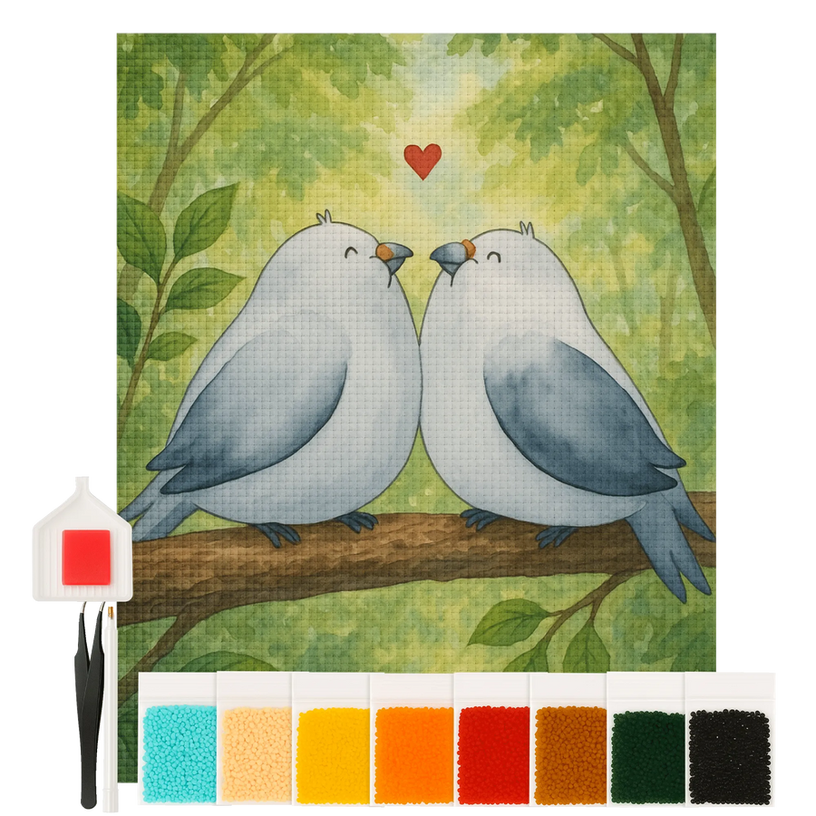 Funkelndes Fazit: Schenke Zeit, Nähe und Kreativität. Das Diamond Painting „Turteltauben Liebe“ ist mehr als ein Bastelset – es ist ein Liebesgeschenk, das von Herzen kommt. ✨