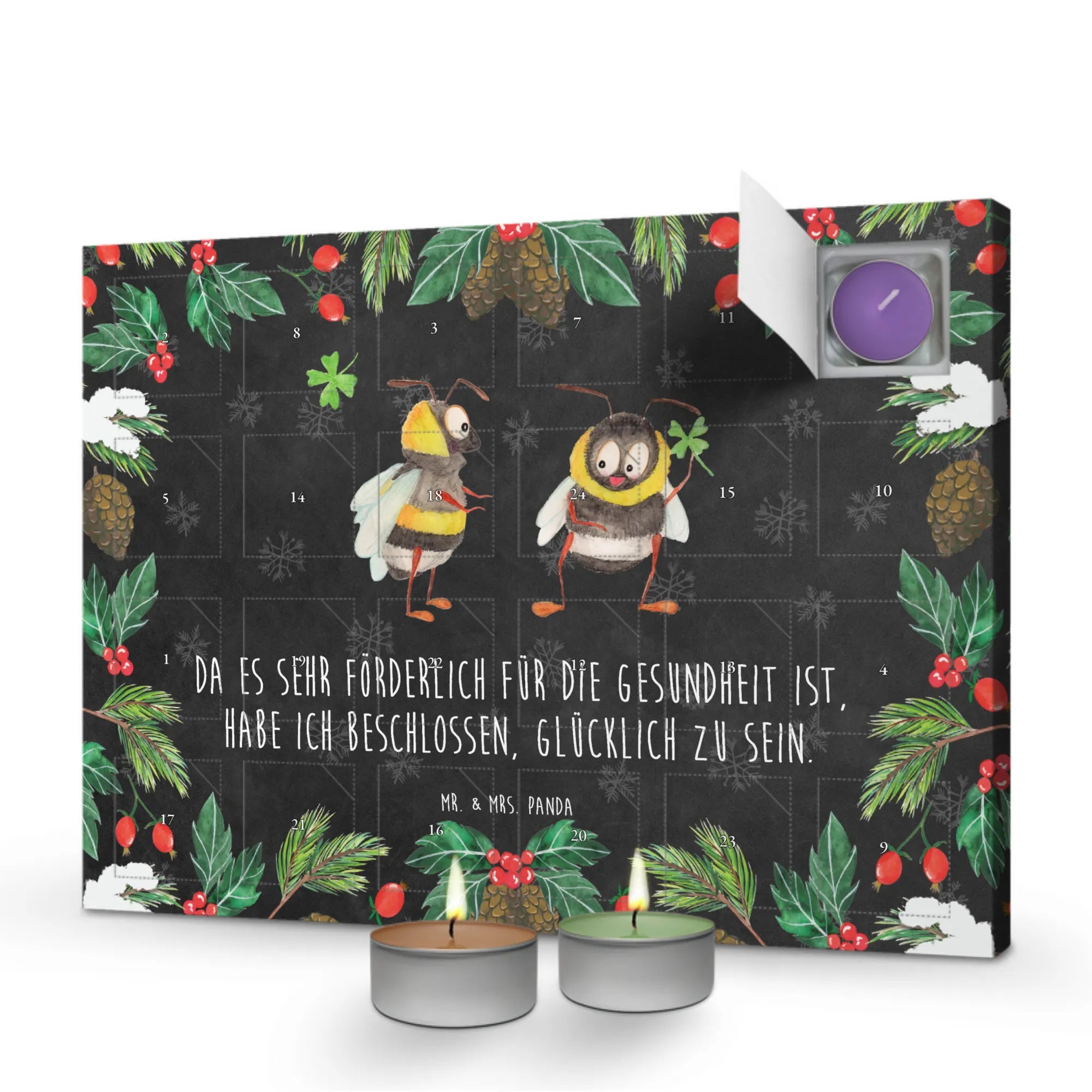 Kerzen Adventskalender Hummeln Kleeblatt - Kreidetafel