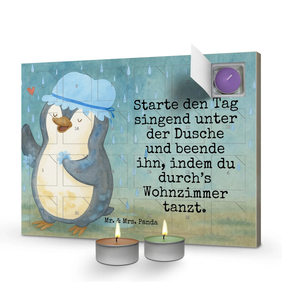 Duftkerzen Adventskalender Pinguin Duschen Design - mit Spruch