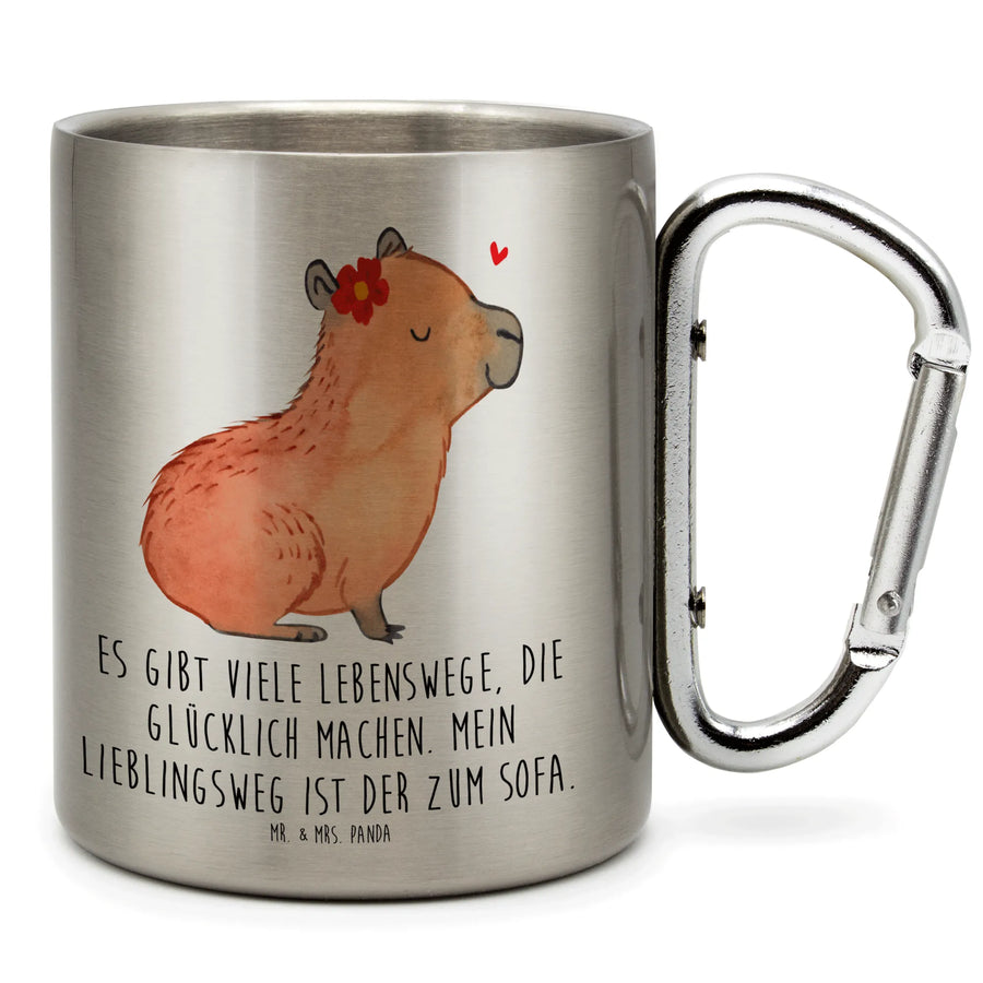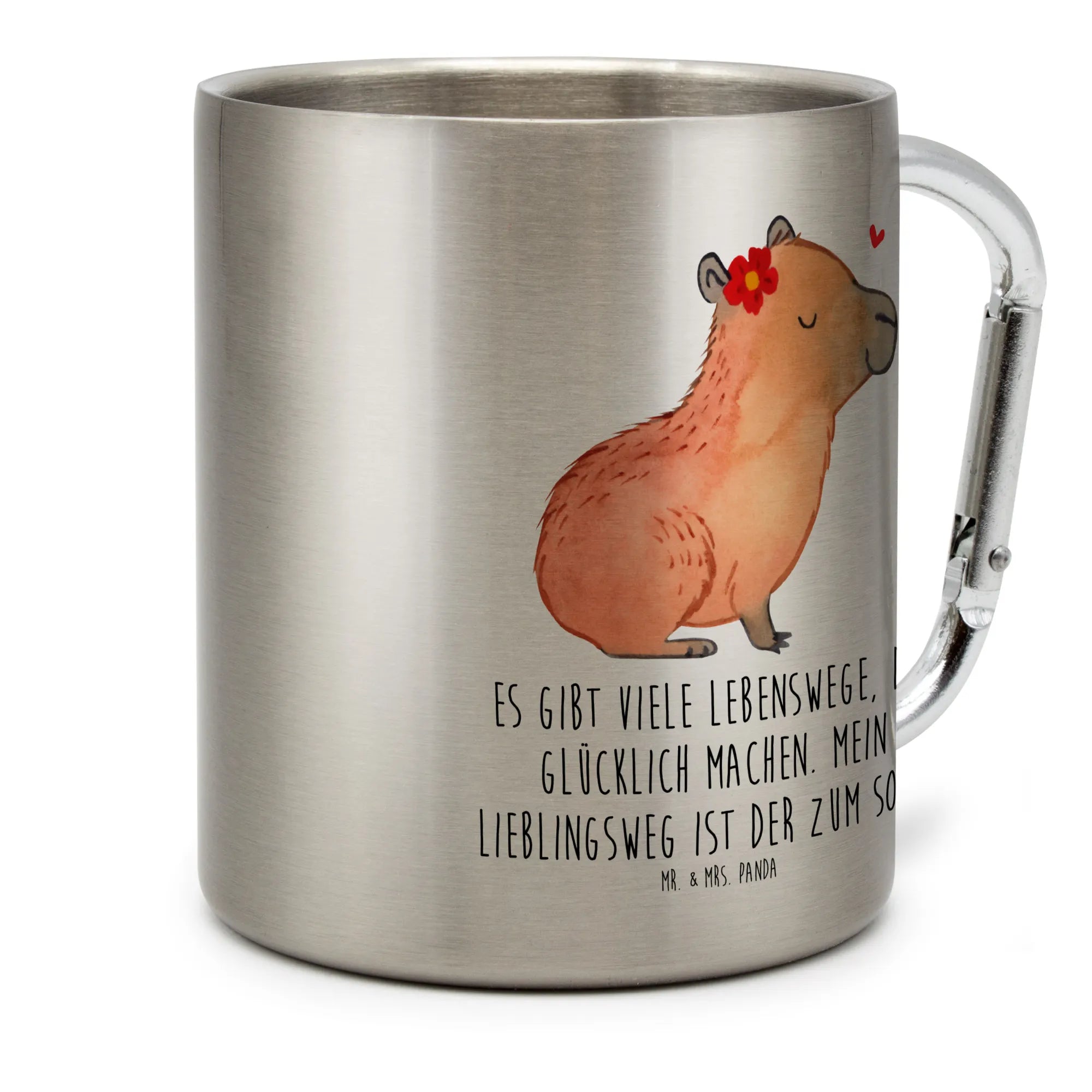 Der Edelstahlbecher 'Capybara Blume' aus der wunderschönen Small World Kollektion von Mr. & Mrs. Panda ist das perfekte Geschenk für all jene, die die Natur lieben und ein Herz für Tiere haben. Mit einem fröhlichen Capybara-Motiv, das eine zarte Blume auf dem Kopf trägt, bringt dieser bezaubernde Becher nicht nur Farbe, sondern auch gute Laune in Deinen Alltag. Die liebevolle Gestaltung von Mrs. Panda transportiert ein Gefühl von Ruhe und Zufriedenheit. Egal, ob zur nächsten Wanderung, beim Camping oder einfach bei einem gemütlichen Abend auf der Couch – dieser Edelstahlbecher ist praktisch, robust und immer ein Eyecatcher.
