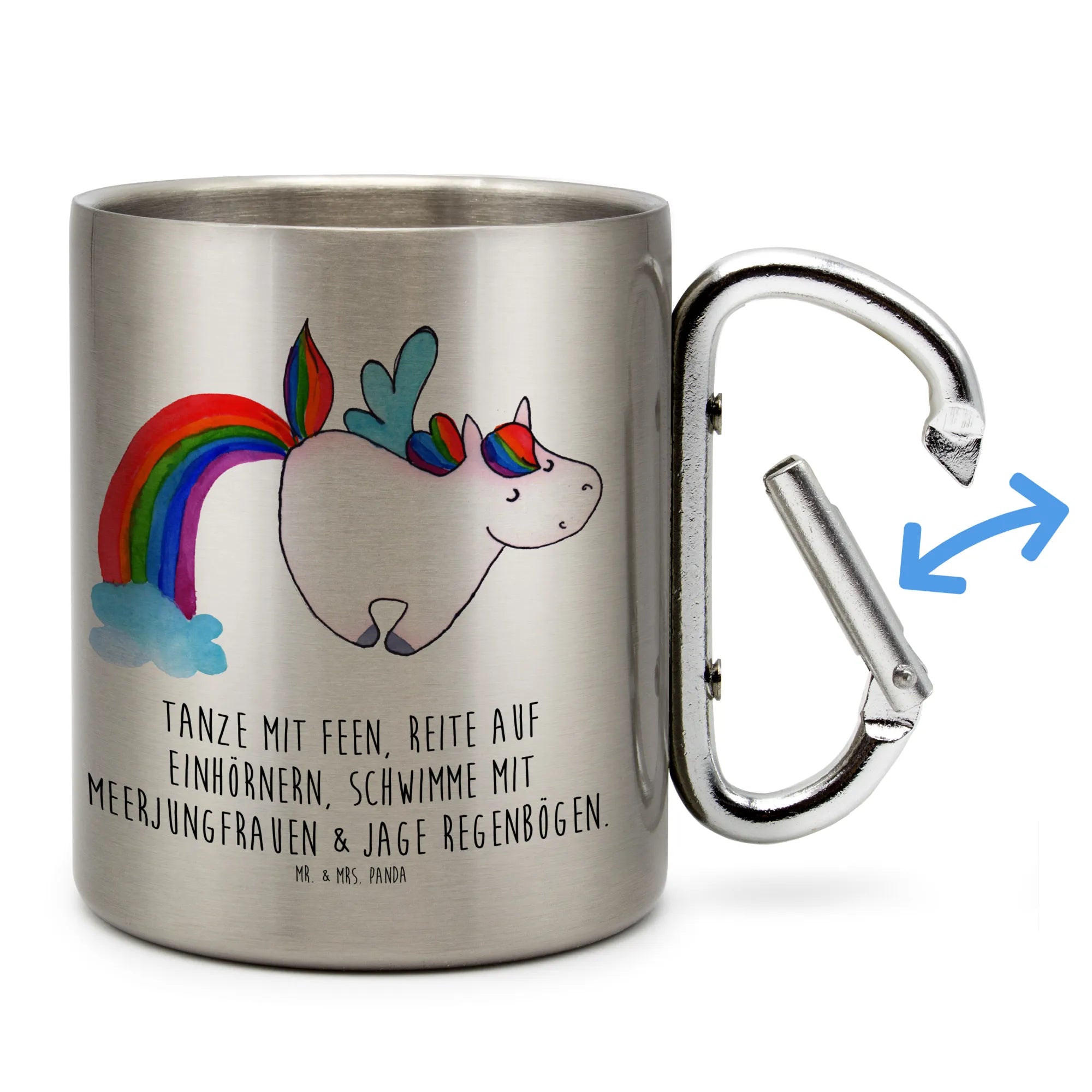 Der Edelstahlbecher von Mr. & Mrs. Panda ist der ideale Begleiter für all deine Abenteuer im Freien! Mit einem Durchmesser von 90 mm und einer Höhe von 80 mm bringt er eine perfekte Größe für jedes Getränk mit. Mit Platz für 330 ml und einem Gewicht von nur 145 g ist er super leicht und extrem praktisch. Die Tasse besteht aus rostfreiem Edelstahl und ist sowohl für heiße als auch kalte Getränke geeignet. Der integrierte Karabinerhaken sorgt dafür, dass du den Becher ganz einfach an deinem Rucksack oder deiner Gürtelschlaufe befestigen kannst. Ob beim Camping, beim Wandern oder im Garten – dieser Becher wird dein treuer Begleiter sein! Bitte wasche ihn von Hand, um seine Lebensdauer zu verlängern, da er nicht spülmaschinenfest ist. Lass dich von den niedlichen Motiven und lustigen Sprüchen verzaubern und genieße dein Getränk mehr denn je! Ein tolles Geschenk für Outdoor-Freunde oder eine Belohnung für dich selbst.