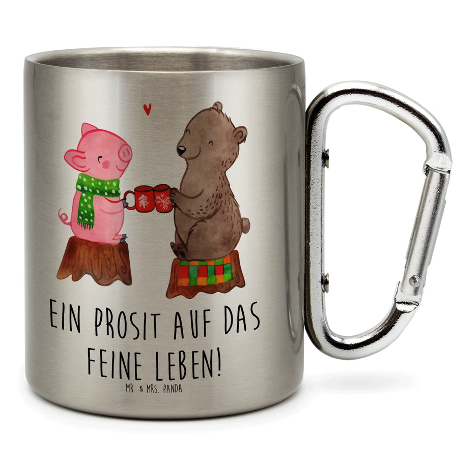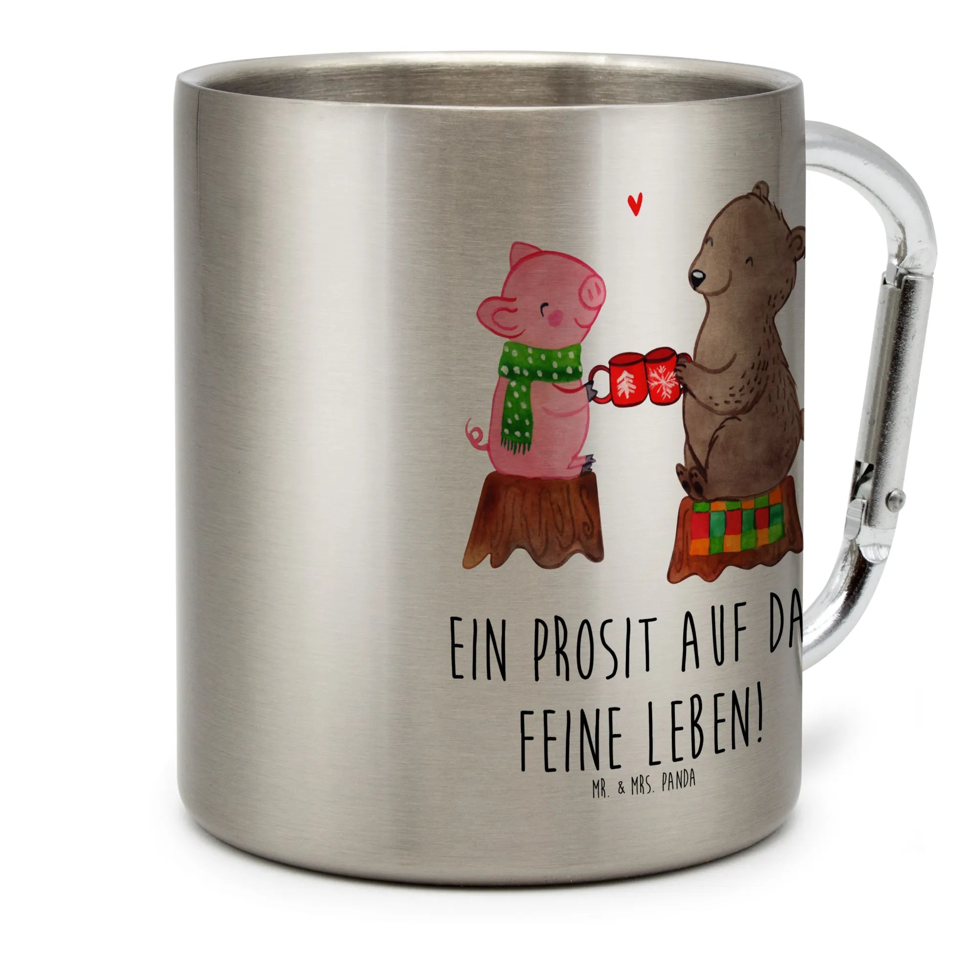 Schaffe unvergessliche Erinnerungen und genieße die winterliche Stimmung – mit dem "Glühschwein Sause" Edelstahlbecher von Mr. & Mrs. Panda. Bitte beachte, dass der Becher nicht spülmaschinenfest ist und eine sanfte Handwäsche empfohlen wird. Achte darauf, dass du ihn nicht unter Wasser tauchst, da Wasser durch die Karabinerbefestigung in den Becher gelangen kann. Mache deine Winterzeit mit diesem bezaubernden Edelstahlbecher zu einem unvergesslichen Erlebnis!