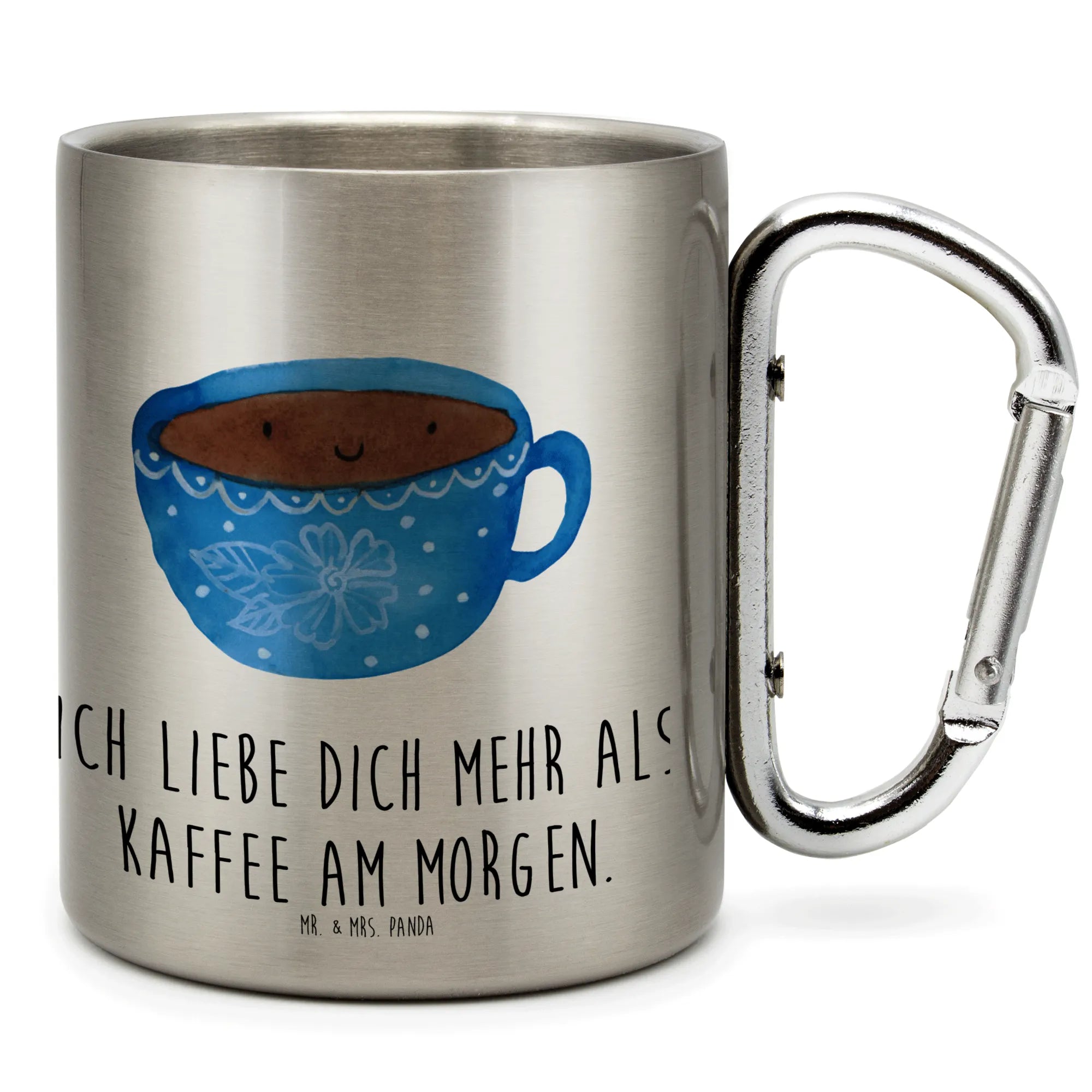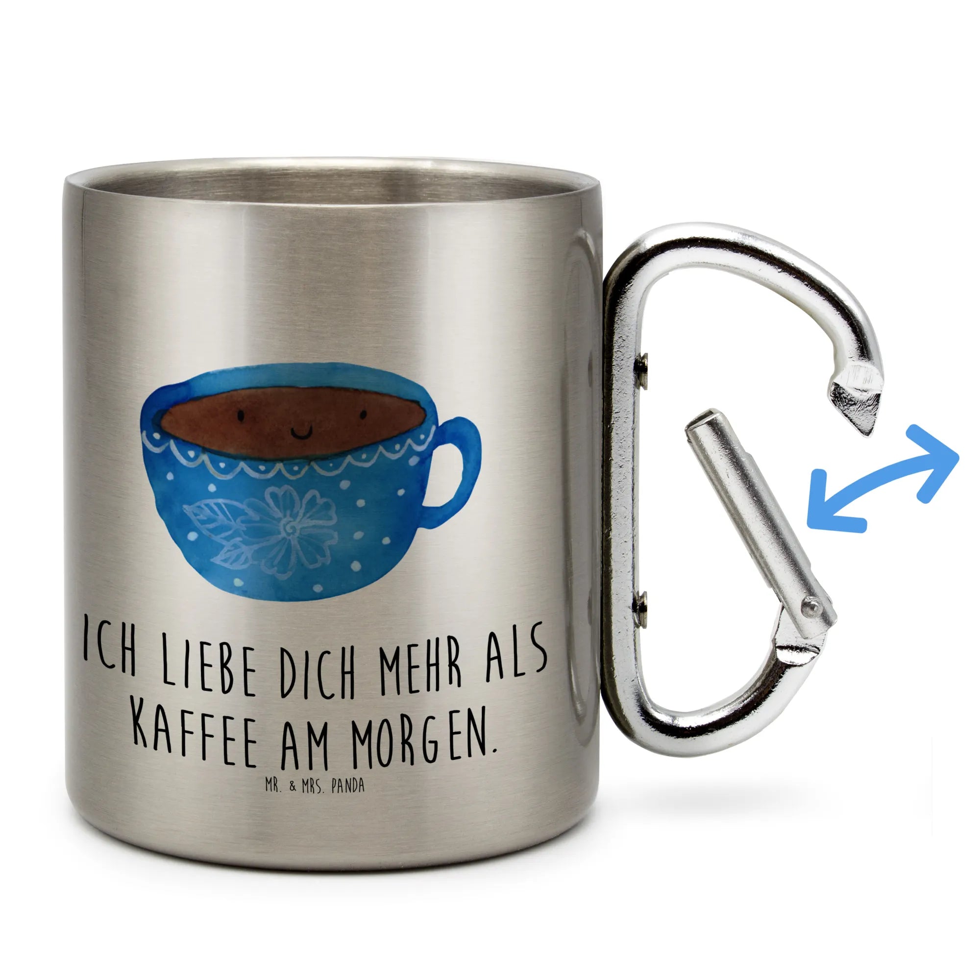 Praktisch ist auch der integrierte Karabinerhaken, mit dem du den Becher an deinem Rucksack oder an der Gürtelschlaufe befestigen kannst. So hast du deinen Lieblingstrink immer griffbereit! Der Edelstahlbecher von Mr. & Mrs. Panda ist nicht spülmaschinenfest, weshalb sanfte Handwäsche empfohlen wird. Durch den Karabiner kann Wasser in den Becher gelangen, also sei vorsichtig mit Wasser.