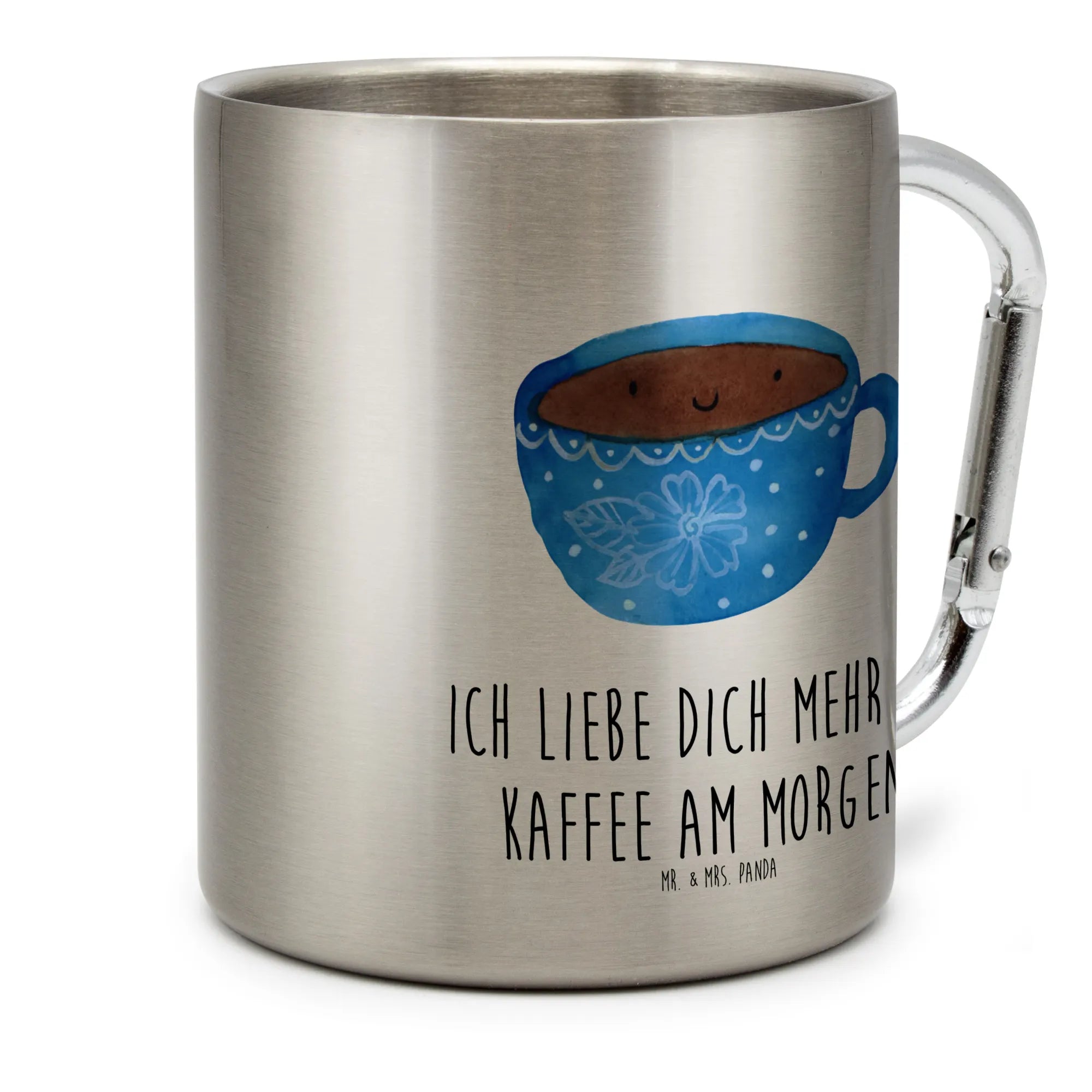 Er ist nicht nur funktional, sondern auch mit einem lustigen Spruch bedruckt: "Ich liebe dich mehr als Kaffee am Morgen!" Dieser Spruch verleiht der Tasse eine besondere Note und zaubert jedem ein Lächeln ins Gesicht. Die fröhliche Tasse zeigt zudem ein niedliches Motiv, das die Freude am Kaffee wunderbar einfängt. Die bruchfeste, isolierende Edelstahlkonstruktion hält deine Getränke lange warm oder kalt und sorgt dafür, dass du deinen Kaffee in vollen Zügen genießen kannst.