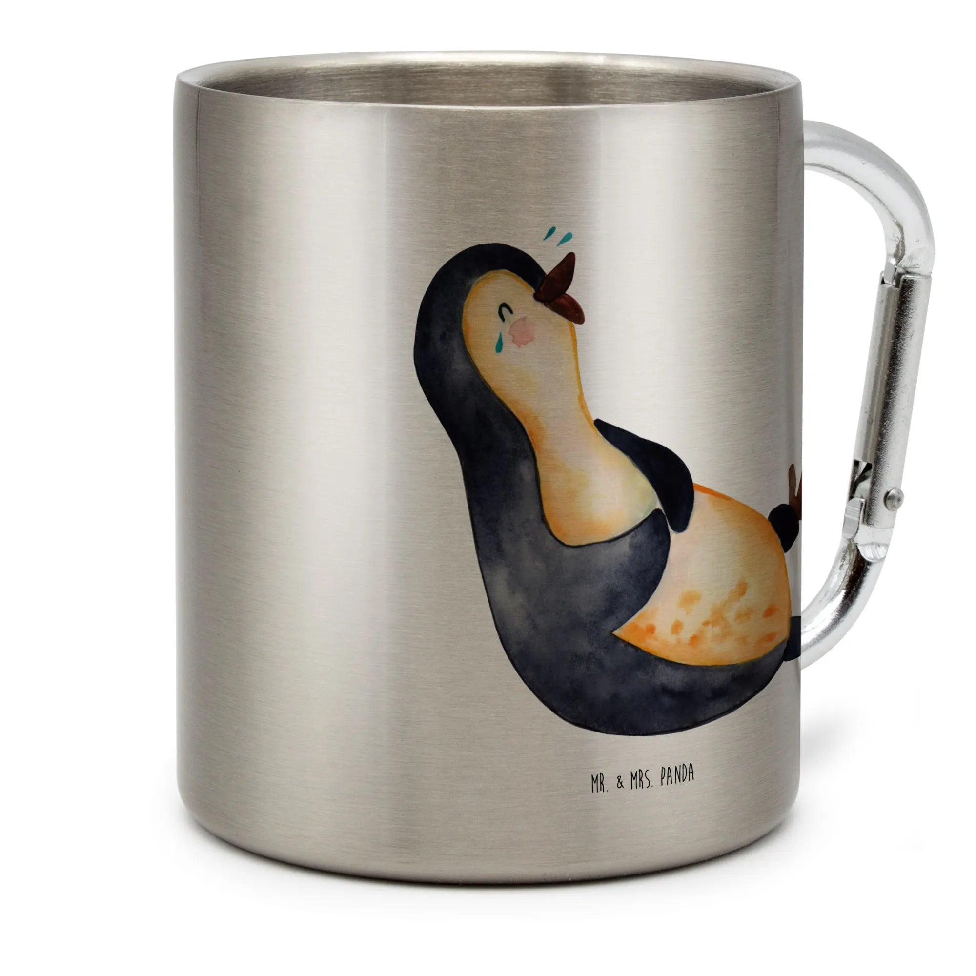 Edelstahlbecher Pinguin lachend - mit Spruch
