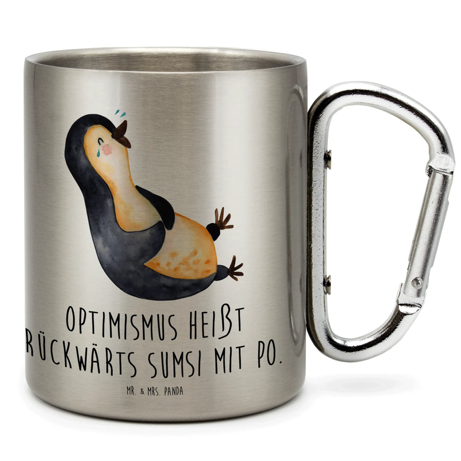 Mr. & Mrs. Panda präsentiert: Edelstahlbecher „Pinguin lachend“ – Dein neuer Lieblings-Thermobecher mit Herz. Schau dir diesen lachenden Pinguin an: er krümmt sich vor Lachen und bringt sofort gute Laune. Kombiniert mit dem witzigen Spruch „Optimismus heißt rückwärts
