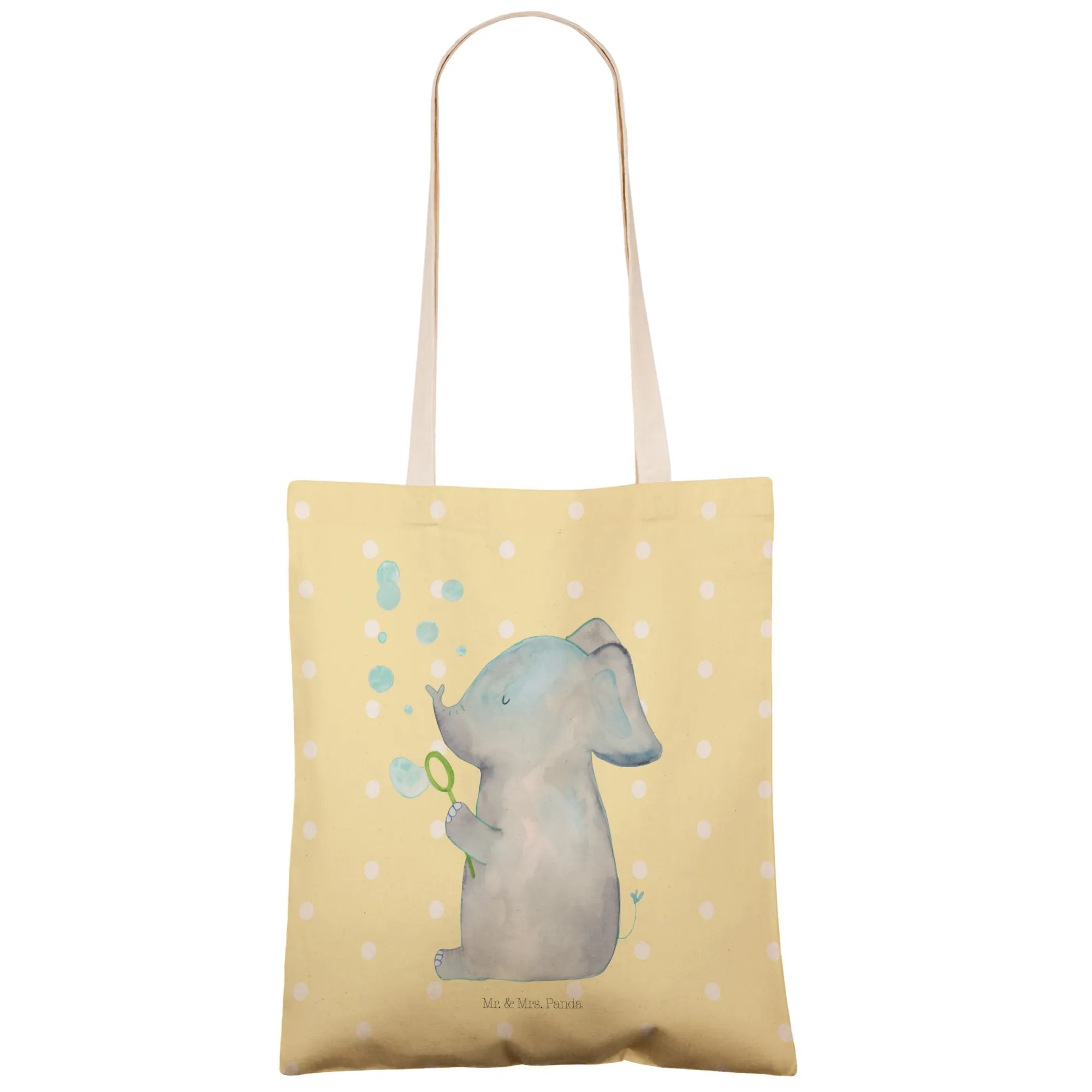 Entdecke die zauberhafte Einkaufstasche mit dem Motiv "Elefant Seifenblasen" aus der Small World Kollektion von Mr. & Mrs. Panda! Diese wunderschöne Tragetasche ist nicht nur praktisch, sondern auch ein echter Hingucker.