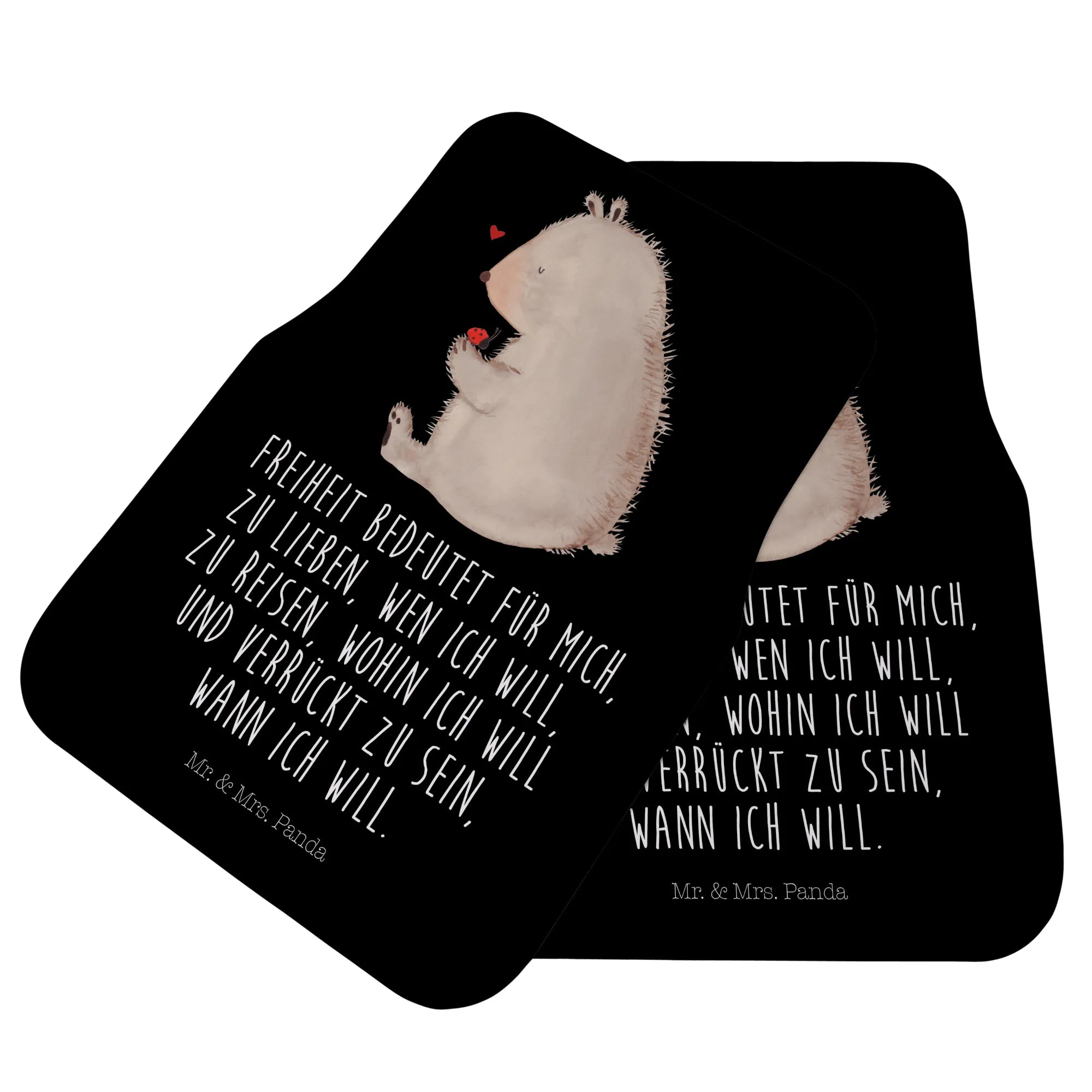 Die Botschaft "Freiheit bedeutet für mich, zu lieben, wen ich will, zu reisen, wohin ich will und verrückt zu sein, wann ich will" wird bei jedem Blick auf die Matte lebendig. Lass dir die Gelegenheit nicht entgehen und mache das Autofahren zu einem besonderen Erlebnis mit dieser wunderbaren Fußmatte von Mr. & Mrs. Panda.