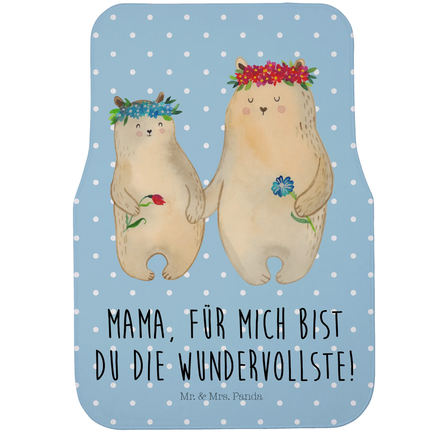 Fahrer Autofußmatte Bären mit Blumenkranz - mit Spruch - Blau Pastell