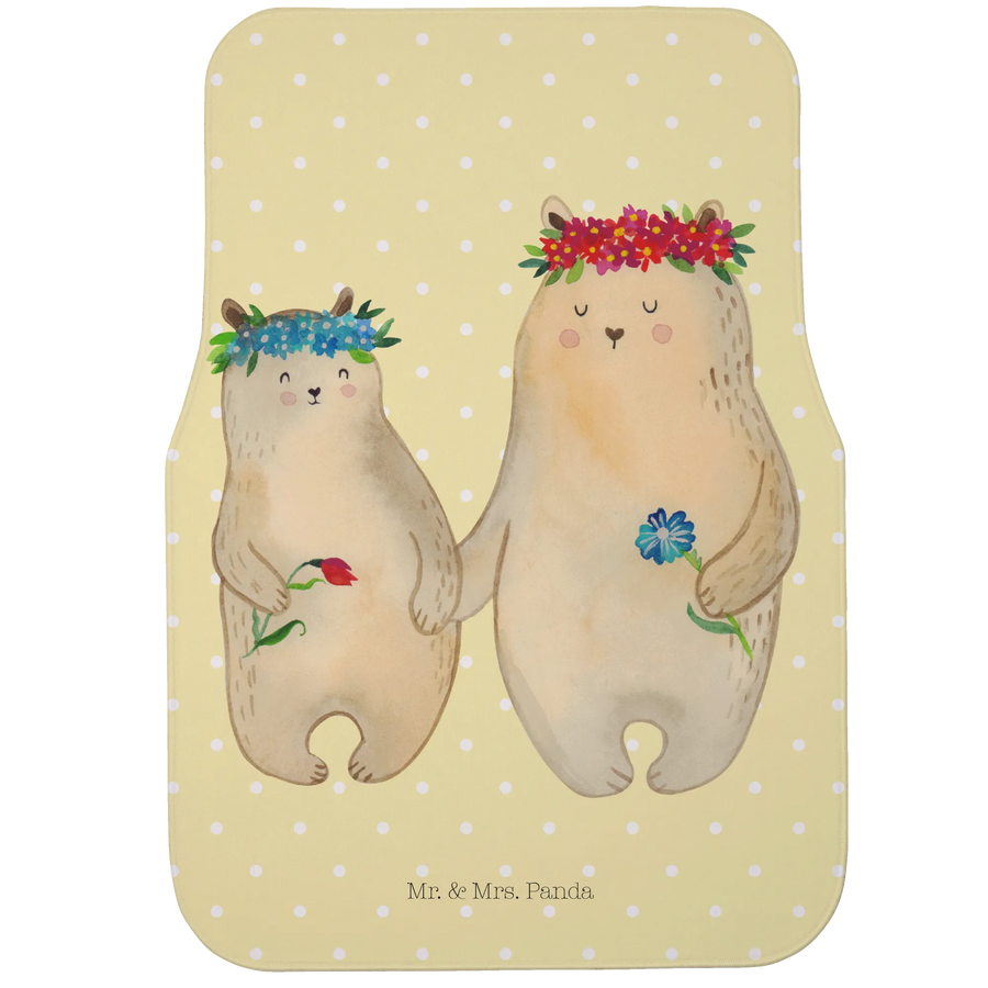Fahrer Autofußmatte Bären mit Blumenkranz - ohne Spruch - Gelb Pastell