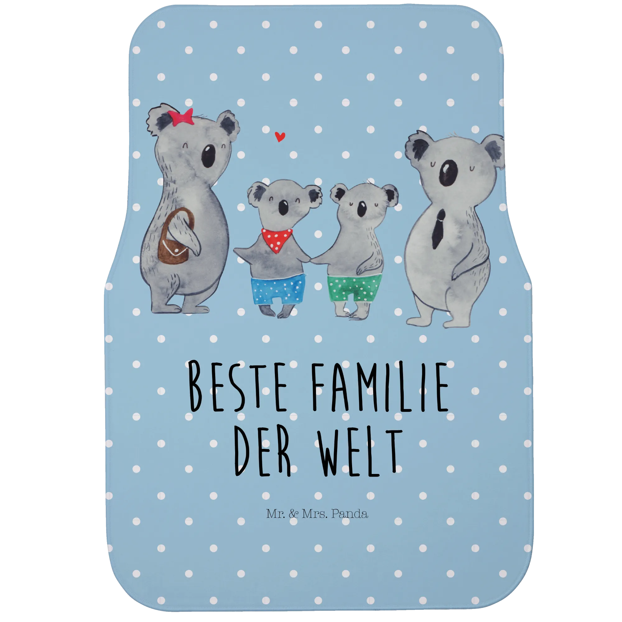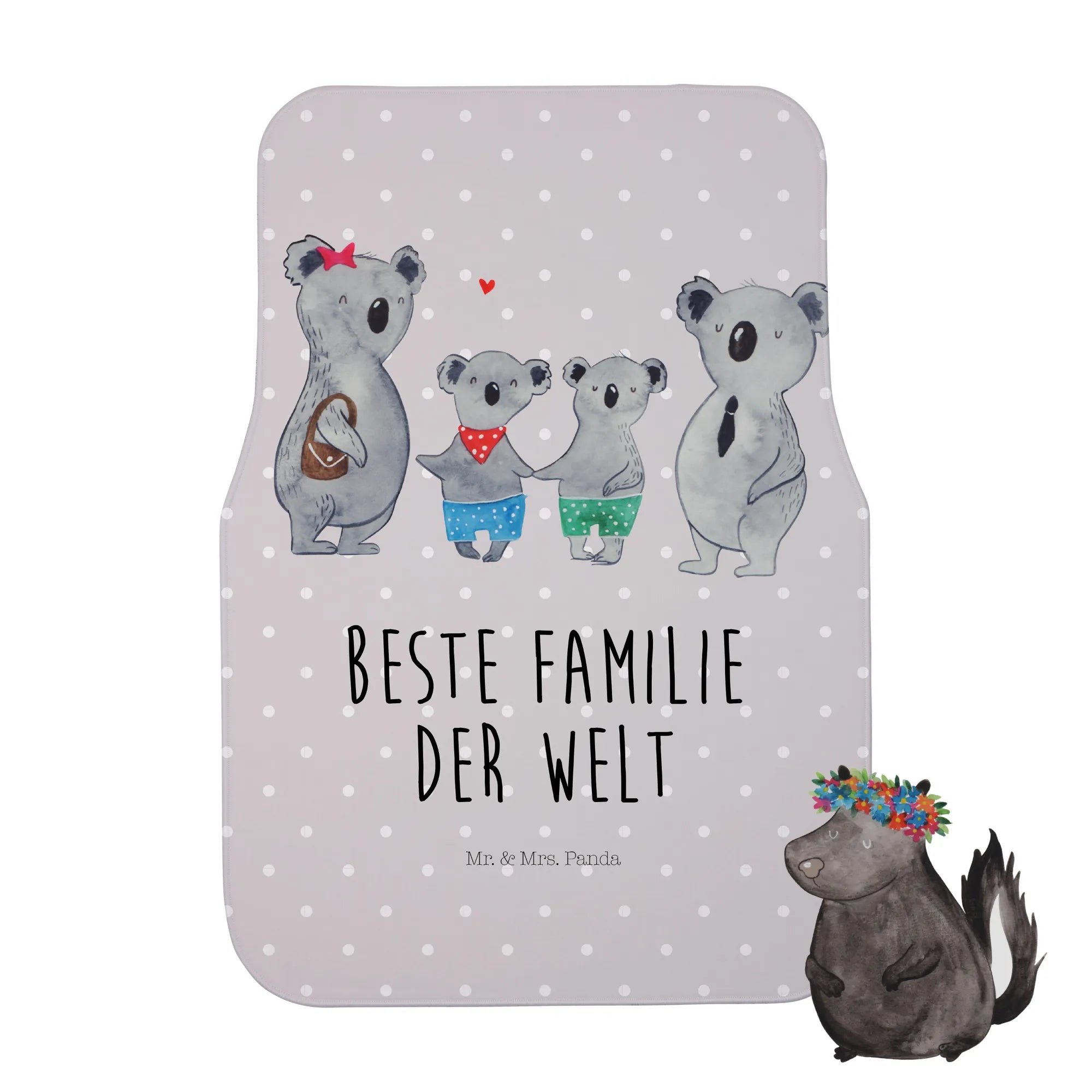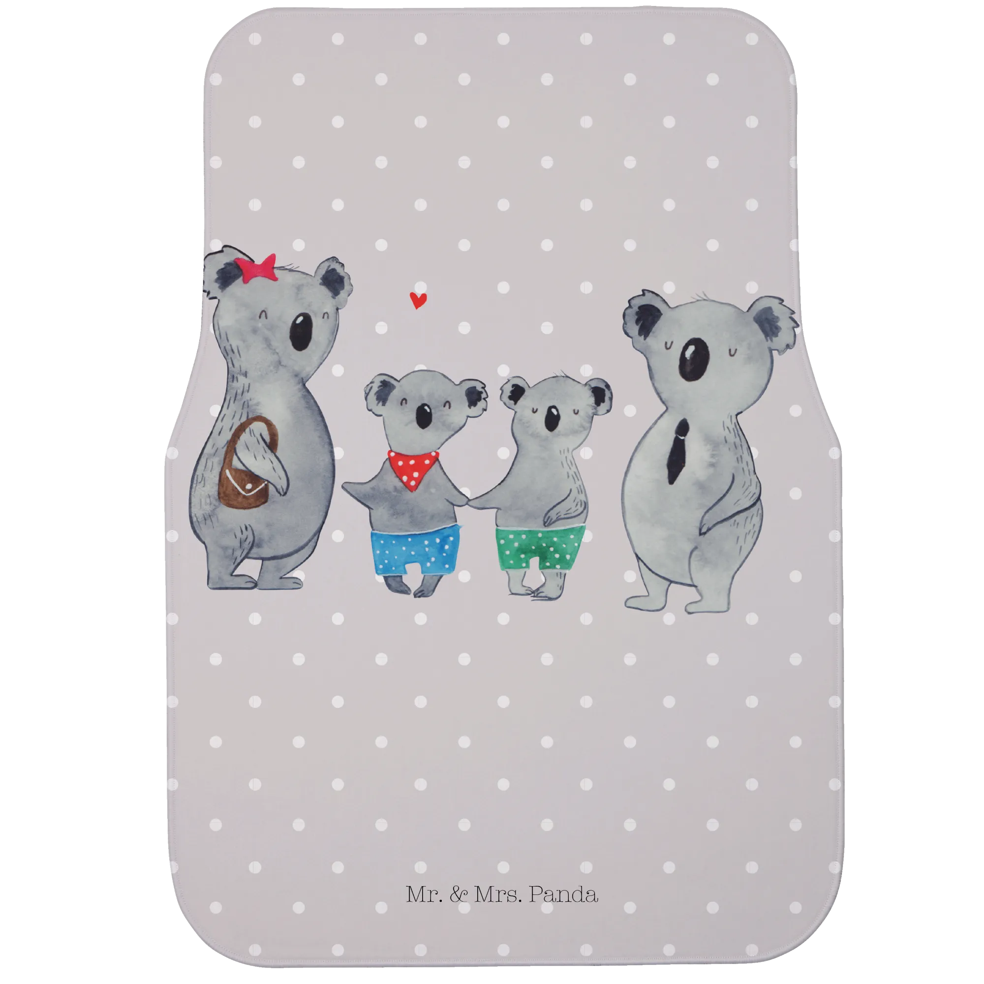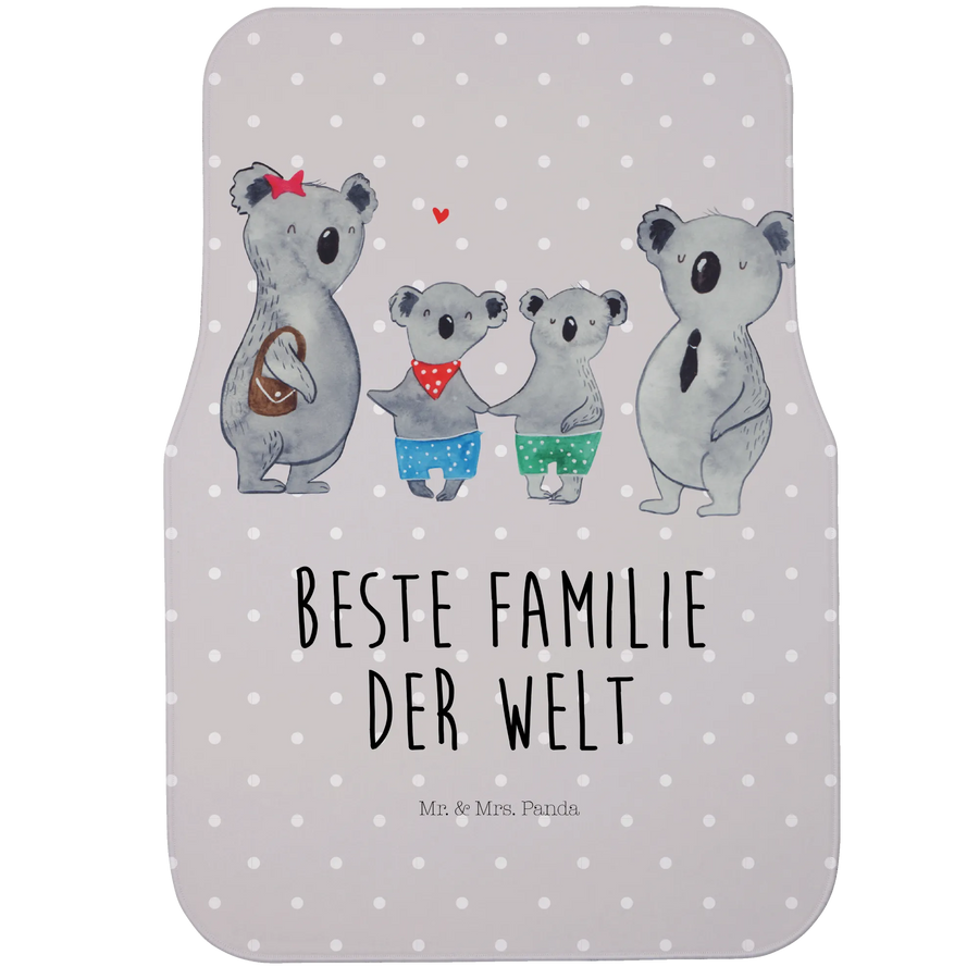 Die Fahrer Autofußmatte "Koala Familie zwei" aus der bezaubernden Familien Kollektion von Mr. & Mrs. Panda ist das perfekte Geschenk für alle, die ihren Wagen nicht nur bei Fahrten, sondern auch bei Zuhause liebevoll gestalten möchten. Diese Fußmatte ist mehr als nur ein praktisches Accessoire – sie ist ein wahrer Hingucker! Mit einem entzückenden Motiv, das eine liebevolle Koalafamilie zeigt, bringt sie Freude in jedes Autofahrzeug. Der größte Koala, der wie eine Mutterfigur wirkt, ist mit einem roten Sternchen im Haar dargestellt. Neben ihr steht ein fröhlicher Koala in einem roten Halstuch, während die beiden kleineren Koalas, die die Kinder repräsentieren, in ihren bunten Shorts strahlen. Der Vater-Koala, elegant im Anzug mit Krawatte, rundet das fröhliche Bild ab.